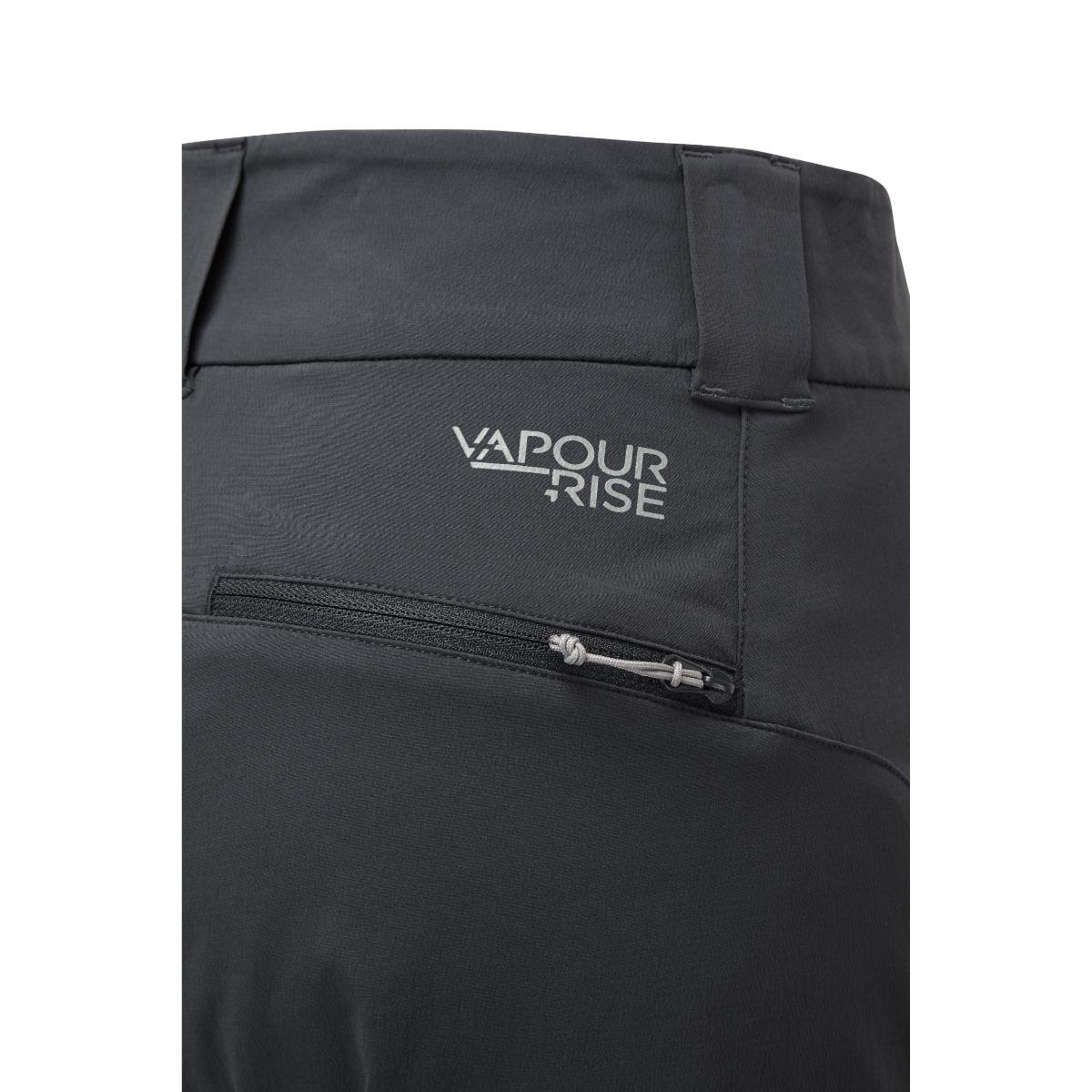 Rab Incline Vapour-Rise™ turbukse til dame er en allsidig mellomvekts-turbukse med gode temperaturregulerende og fuktighet stransporterende egenskaper, ypperlig for turer i uforutsigbart vær. Buksen benytter et skall av dobbeltvevd Matrix™, et vindavvisende og meget pustende materiale av polyamid og elastan som gir god bevegelsesfrihet. Denne er videre forbedret takket være artikulerte knær og stroppestramming i livet. Fôret består av en kombinasjon av Vapour-Rise™ Warm der det er behov for varme og Vapour-Rise™ Wicking hvor fuktighetsavledning er viktigst. Fire glidelåslommer gir trygg oppbevaring av verdisaker og småting, og er strategisk plasserte for ikke å kræsje med seletøy.