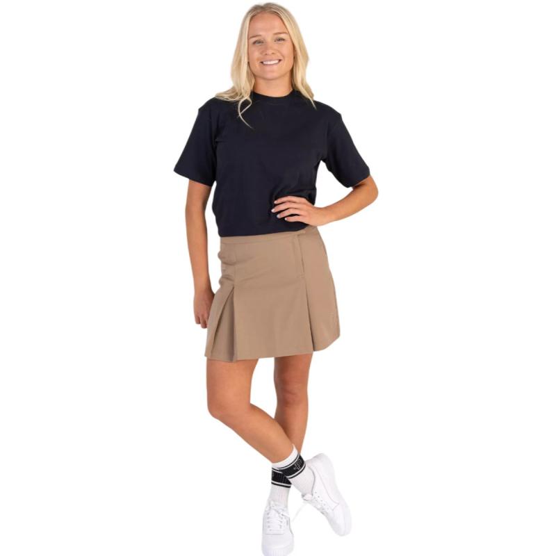 Pelle P Sport Pleat skort til dame er et stilig skjørt med plisséer og innebygd shorts for maksimal komfort og bevegelsesfrihet. Plagget er laget av hurtigtørkende og tøyelig materiale og gjør seg ypperlig på aktive sommerdager.