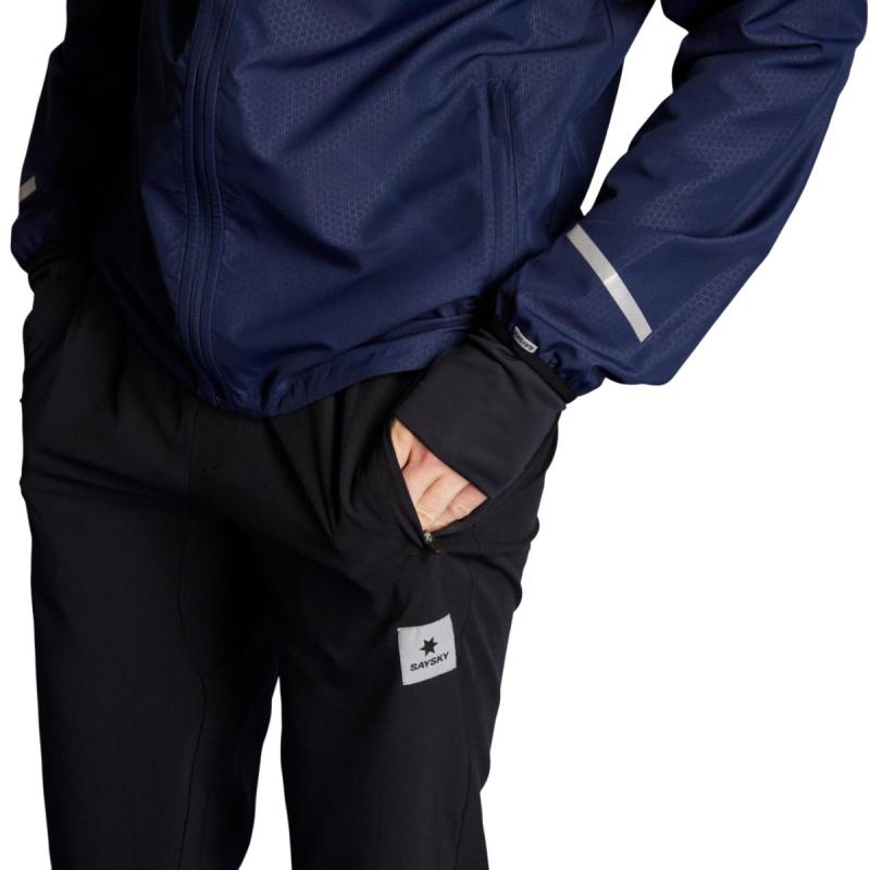SAYSKY Pace løpebukse til dame og herre er stilren bukse, designet for løpeturer i alle slags tempoer. Buksen er utstyrt med avsmalende ben fra knærne og ned for et atletisk utseende. Glidelåslommer i siden og en vanntett glidelåslommer bak gir trygg oppbevaring av verdisaker, mens reflektiv SAYSKY-logo på låret og skrift på benet sørger for økt synlighet. Fireveis stretch sikrer optimal bevegelsesfrihet og en komfortabel passform.