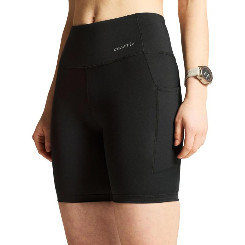 Craft Essence Kort Tights til dame er den perfekte treningspartneren når du vil kjenne full bevegelsesfrihet uten å gå på kompromiss med støtte og komfort. Denne korte treningstightsen er utviklet for alt fra høyintensiv løping til styrkeøkter og gruppetimer, og leverer en kombinasjon av elastisitet, temperaturregulering og stabilitet som løfter treningsopplevelsen din. Det funksjonelle jerseystoffet består av resirkulert polyamid og elastan, noe som gjør tightsen både myk og svært fleksibel, samtidig som den sitter godt uten å føles stram. Materialet sørger for god pusteevne og effektiv temperaturkontroll, slik at du holder deg komfortabel når intensiteten øker. Den brede linningen med justerbar snøring gir en trygg og personlig passform, og hindrer at tightsen sklir under bevegelse, enten du spenner opp i knebøy eller øker tempoet utover i økten. De to store benlommene gir plass til mobil, gel, kort eller andre småting du trenger å ha med deg på tur. Med sin middels høye midje, gode støtte og behagelige fleksibilitet er dette et plagg som fungerer like godt på varme sommerøkter som i innendørs styrketrening.
