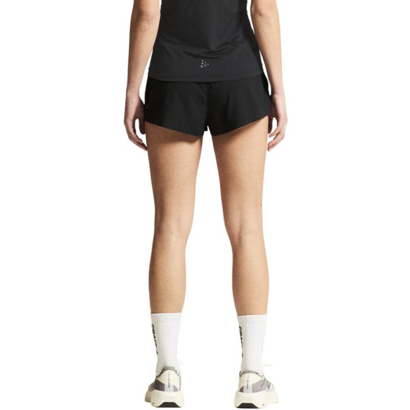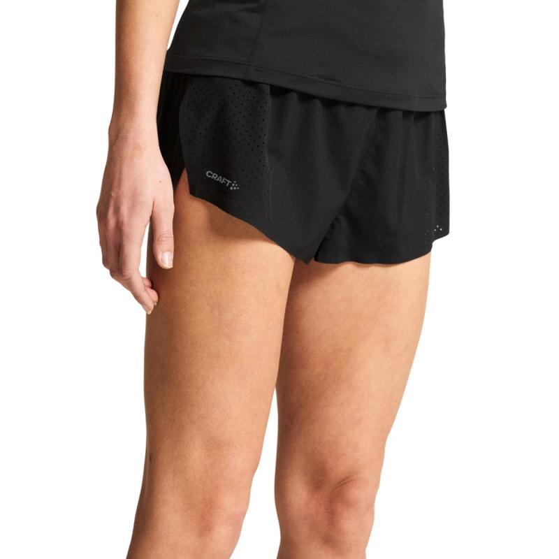 Craft Race Day Split løpeshorts 2 til dame er en høytytende shorts, designet for maksimal komfort og bevegelsesfrihet over lange distanser. Shortsen er laget av svært funksjonelt jersey-materiale med strategisk plasserte perforeringer for effektiv fukttransport og luftgjennomstrømning under høyintensiv aktivitet. Lett og elastisk innertruse og høye sidespalter sikrer maksimal bevegelsefrihet, mens tapede benavslutninger forhindrer gnagsår. Elastisk liv med snøring gir en sikker og komfortabel passform.