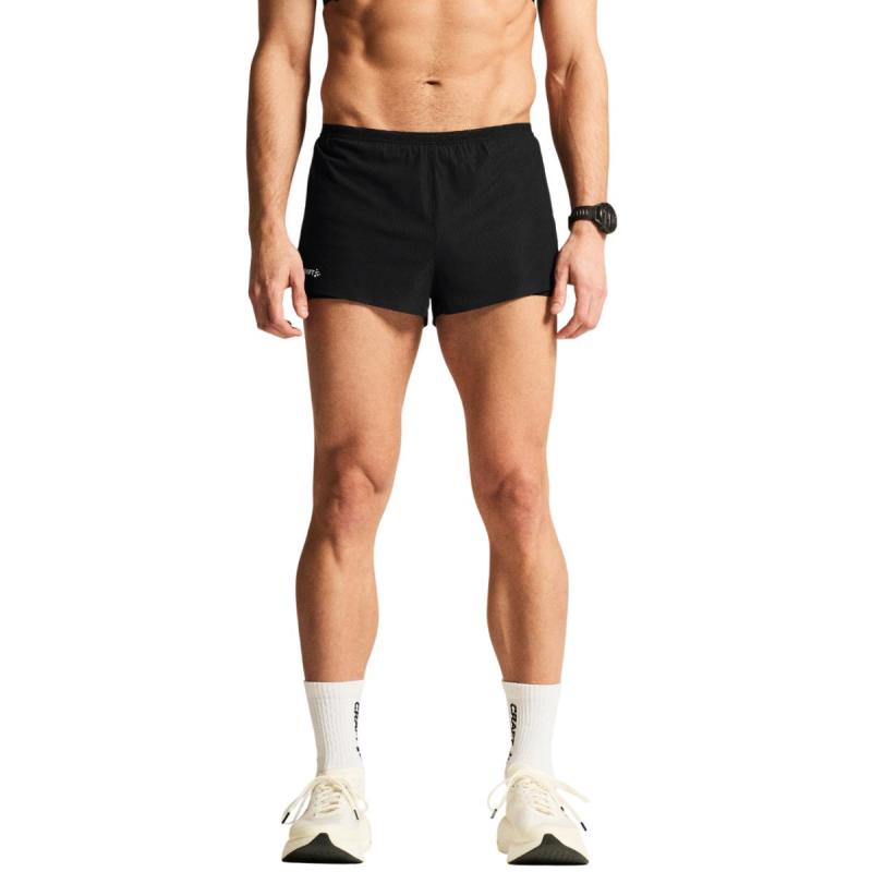 Craft Race Day Split løpeshorts til herre er en høytytende shorts, designet for maksimal komfort og bevegelsesfrihet over lange distanser. Shortsen er laget av svært funksjonelt ripstop-materiale for ypperlig slitestyrke, og er utstyrt med en pustende og komfortabel innertruse av elastisk mesh. Høye sidespalter sikrer maksimal bevegelsefrihet, mens tapede benavslutninger forhindrer gnagsår. Elastisk liv med snøring gir en sikker og komfortabel passform.