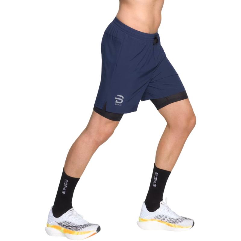 Dæhlie Run 2-i-1 løpeshorts til herre er den perfekte shortsen for moderate økter i mildt vær, laget av materiale med fireveis stretch for optimal bevegelsesfrihet fra første til siste kilometer. Hurtigtørkende stoff med ypperlige fukttransporterende egenskaper sørger for å holde deg komfortabel og tørr, mens flate sømmer minimerer sjansen for gnagsår. Elastisk liv med strammesnor gir en sikker passform, mens lomme bak har plass til små verdisaker eller ernæring.