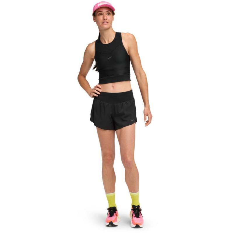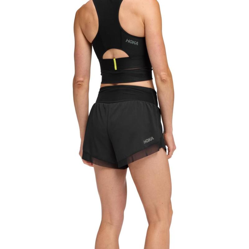 Hoka Glide 4" løpeshorts til dame er inspirert av ultraløpere, designet for å levere ultimat komfort og ytelse uansett hvor langt du har tenkt deg. Shortsen kombinerer det ultrakomfortable designet fra den originale Glide-shortsen, med funksjonaliteten til et løpebeltet, utstyrt med mesh-lomme på ryggen og en diskret glidelåslomme i siden for trygg oppbevaring av både ernæring og verdisaker. Den lette og luftige lineren av nålehullsmesh har ypperlig pusteevne, mens hovedmateriale av ultralett, vevd stretch-materiale gir ypperlig bevegelsesfrihet. Bredt elastisk bånd i livet gir en sikker og komfortabel passform, mens refletkiv HOKA-logo gir økt synlighet under dårlige lysforhold. DWR-behandling sørger for at lett regn preller av istedenfor å bli absorbert i materialet.