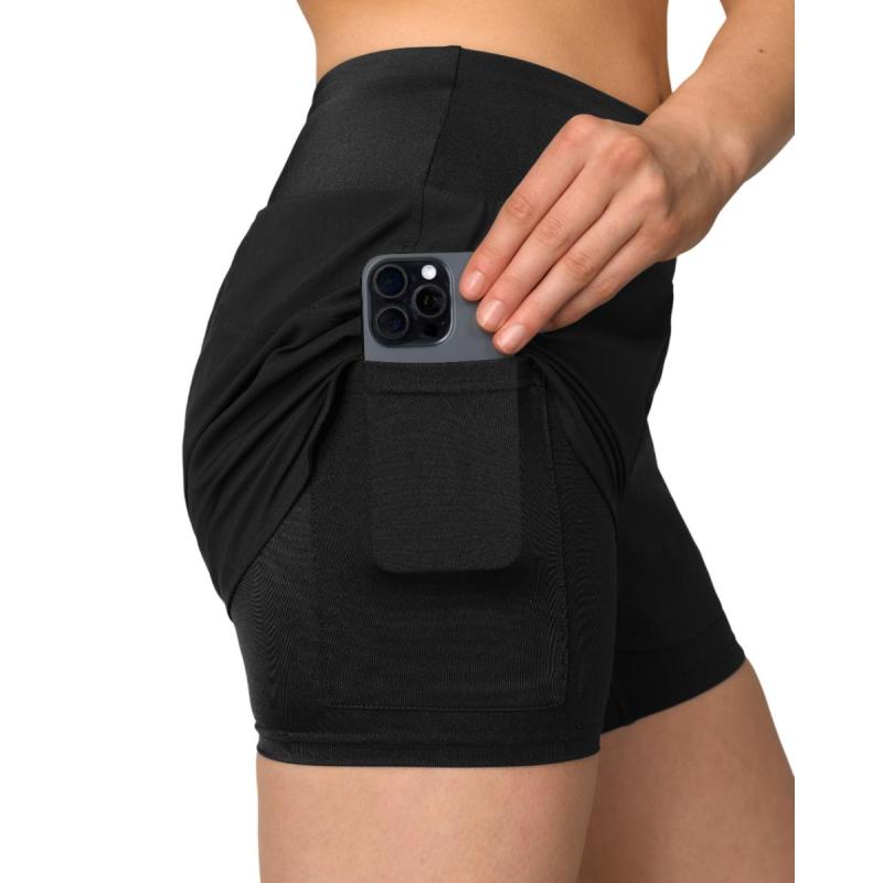 Komfortabel og støttende 2-i-1 løpeshorts med mobillomme på låret.