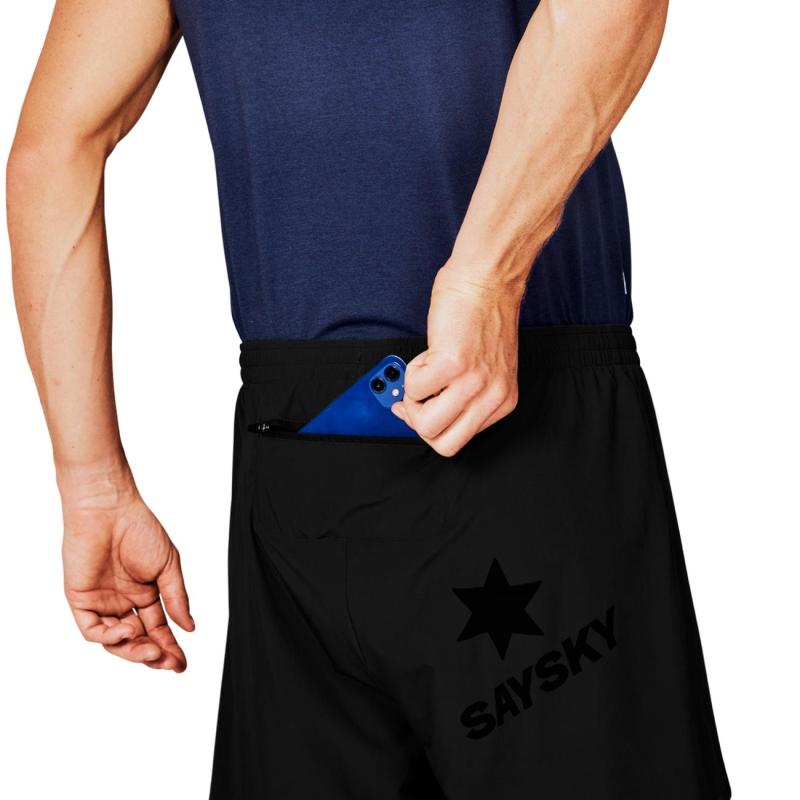 Pace 5" shorts til herre er en av SAYSKYS bestselgere, og det er ikke uten grunn! Shortsen er ekstremt lett og pustende, og innehar ypperlige fukttransporterende egenskaper som holder deg komfortabel og tørr fra start til slutt. Smale ben motvirker at shorsten flagrer i vinden, mens fireveis stretch sikrer optimal bevegelsesfrihet. Utstyrt med en 15x8cm baklomme med glidelås og svetteavvisende membran for små verdisaker, samt en innvendig stretchlomme for ernæring. Vevd SAYSKY-merke i front, og ton-i-ton logo bak gir et stilrent utseende.