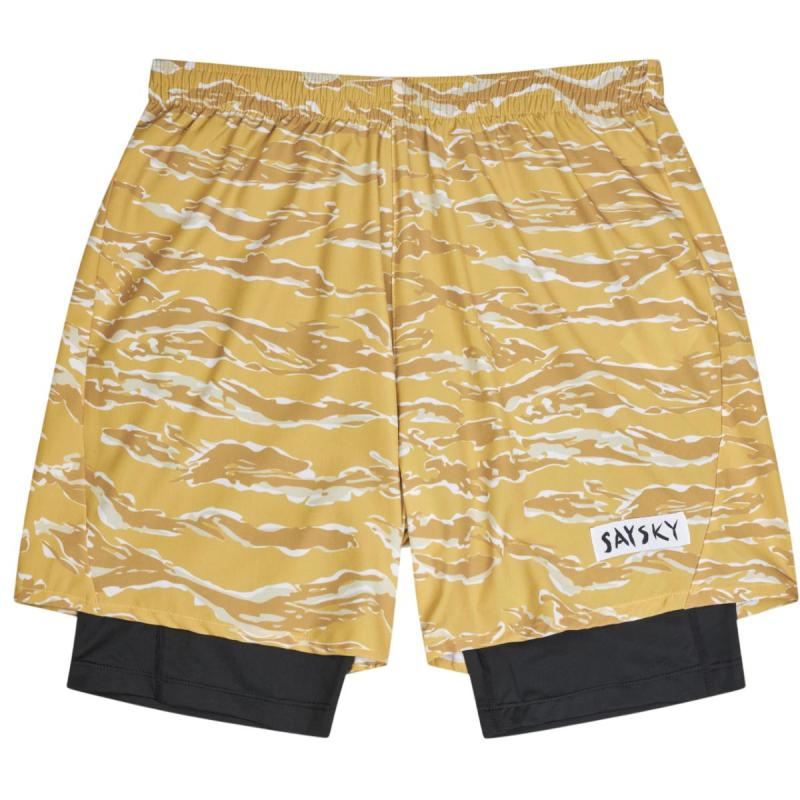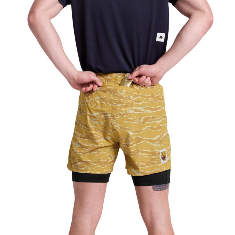 SAYSKY Tiger Pace 2-i-1 5" løpeshorts til herre er en høyytelses shorts for deg som ønsker det beste fra to verdener: lettvekts bevegelsesfrihet og støttende dekke. De ytre skallet er pustende og hurtigtørkende, mens den innebygde tightsen gir en sikker passform for når farten øker. Fireveis stretch sikrer uhindret bevegelsesfrihet uansett intensitetsnivå. Pace er designet for alt fra landevei til tekniske stier, og er utstyrt med flere lommer for oppbevaring av alt fra verdisaker til ernæring. Shortsen kommer her i et stilig og iøyenfallende design med camo tigerstriper.
