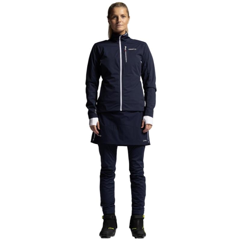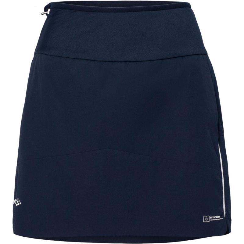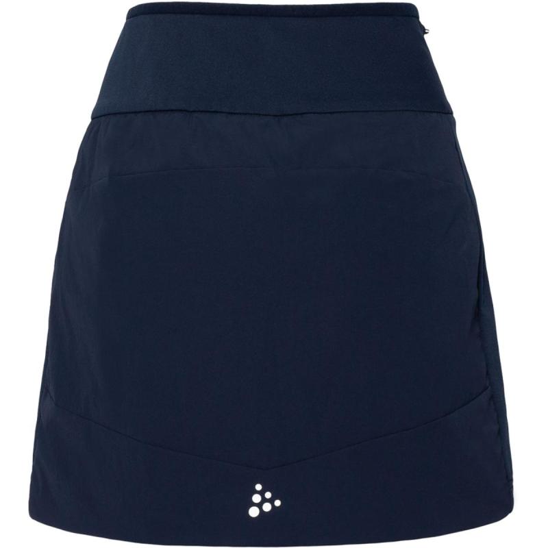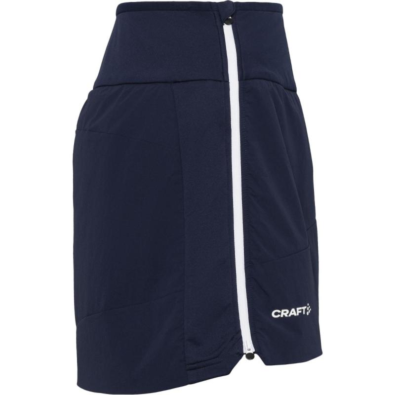 Craft NOR ADV Nordic Training Insulate skjørt er et vattert langrennsskjørt for bruk over treningstights på kalde og vindfulle dager. Skjørtet er utstyrt med et vind- og vannavstøtende yttermateriale, kombinert med tynn vattering både foran og bak for lett isolasjon. Elastisk trikot i sidene sikrer både god ventilasjon og ypperlig bevegelsesfrihet, mens kort glidelås på den ene siden og hel 2-veis glidelås på den andre gir både enkel av- og påkledning, samt muliggjør rask justering av mobilitet ved veksling mellom skøyting og klassisk.