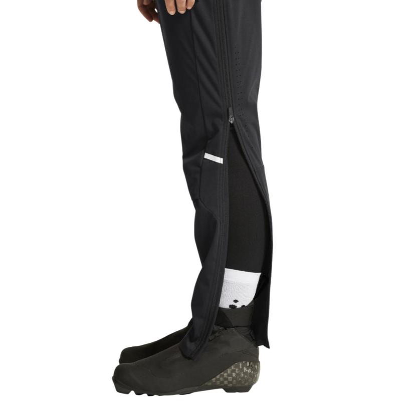 Craft PRO Nordic Race FZ skibukse til dame er en høyytelses langrennsbukse for intensive økter i kaldt vær eller til oppvarming på konkurransedager. Buksen er laget av 3-lags vind- og vanntett Ventair®-materiale som gir ypperlig værbeskyttelse, med perforeringer bak og ventilasjonsåpninger under knærne for god ventilasjon. Teipede benavslutninger og snøring i livet gir en sikker og tettsittende passform, mens gjennomgående 2-veis glidelås i sidene gir enkel av- og påkledning. Liten lomme midt på bak gir trygg oppbevaring av mindre verdisaker.
