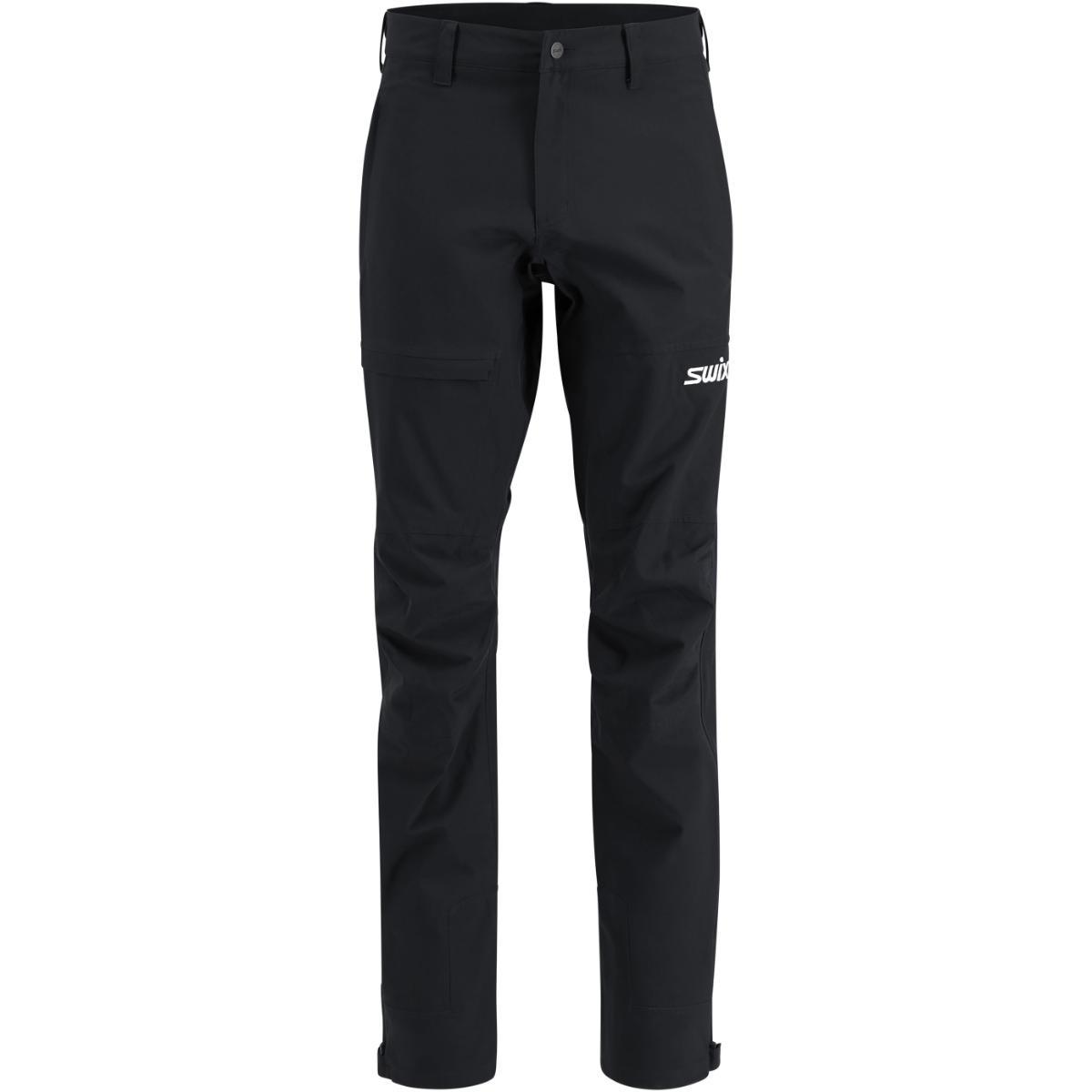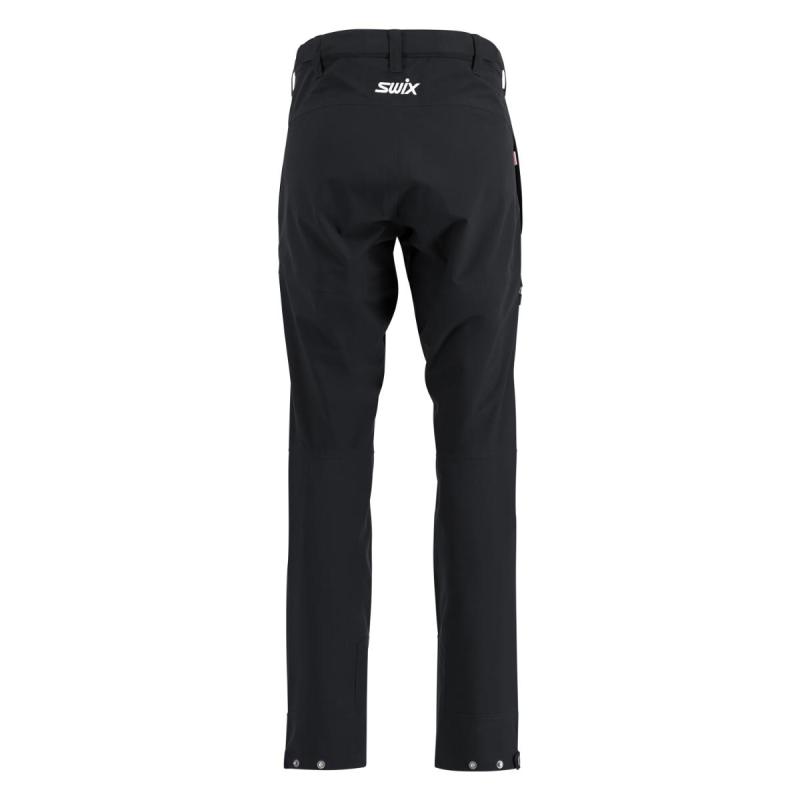 Swix Fjell skibukse til herre er laget av robust 3-lags skallmateriale og utstyrt med teipede sømmer og vannresistente glidelåser for ypperlig værbeskyttelse. Artikulerte knær og justerbart liv med beltehemper gir en behagelig passform og god bevegelsesfrihet, mens toveis glidelås i siden gir ypperlig ventilasjon ved behov. Glidelåslommer i siden gir trygg oppbevaring av verdisaker, mens knappestramming nederst på buksebena gir tilpasning til ulike typer skotøy. Fjell skibukse egner seg ypperlig til utforskning både med og uten ski på bena.