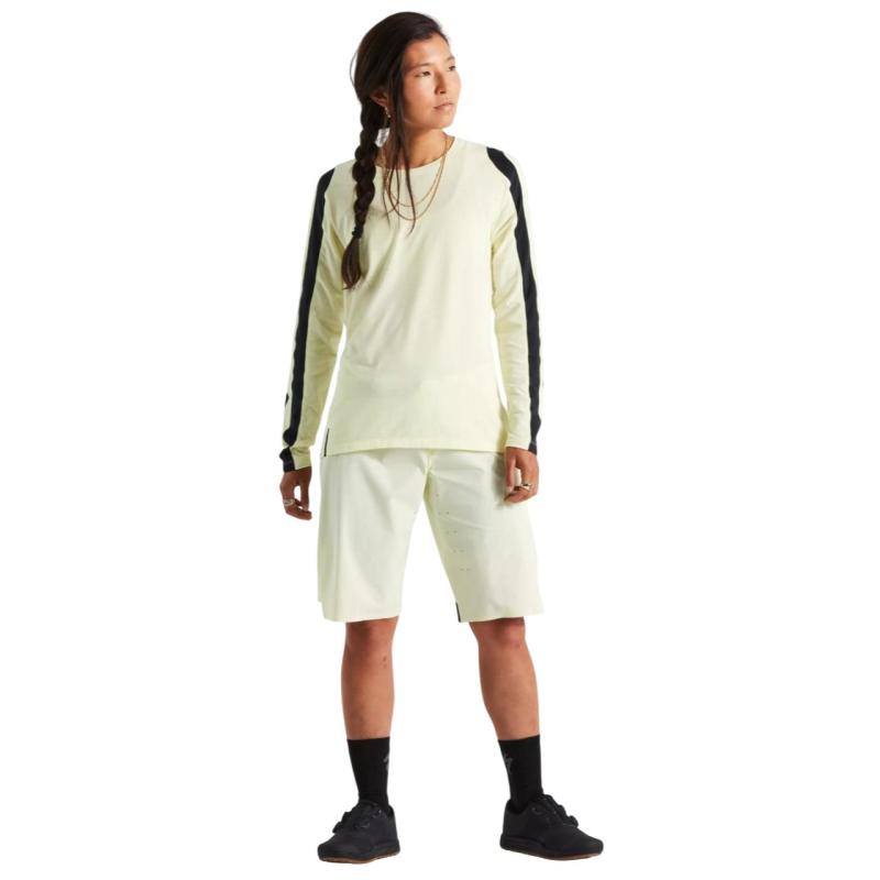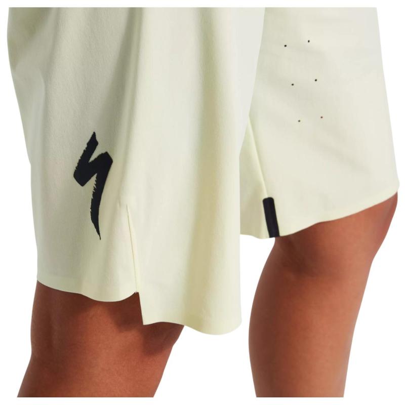 Specialized Butter Trail Air sykkelshorts til dame er designet for varme dager, utstyrt med laserskjærte luftehull for ekstra ventilasjon der det trengs mest. Shortsen er laget av Specializeds VaporRize™-materiale for en perfekt kombinasjon av slitestyrk, stretch og lav vekt. Materialet er dessuten utstyrt med vannavvisende behandling for lett beskyttelse mot regn. Glidelåslomme på låret gir sikker oppbevaring av nødvendigheter, mens ratchet-stramming i livet gir enkel justering av passform og sørger for at shortsen sitter godt selv ved fullastet lomme. Løs passform gir god plass til knebeskyttere. OBS! Uten liner.