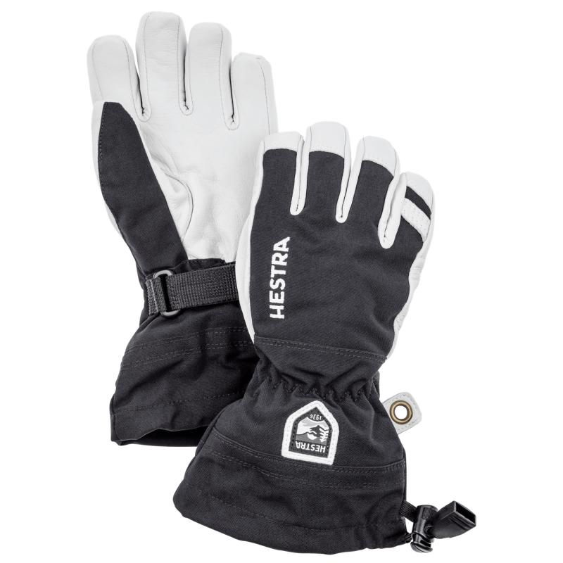 Hestra Army Leather Heli Ski skihanske til junior er en n pålitelig og varm skihanske for lange dager ute i snø og kulde. Slitesterkt geiteskinn i håndflaten og på fingrene gir eksepsjonelt grep, mens vann- og vindtett 3-lags polyamid på håndbaken gir ypperlig beskyttelse mot elementene. Den utakbare lineren gir god varme og kan lett vaskes eller tørkes ved behov, mens lang mansjett med snowlock og borrelåsstramming rundt håndleddet gir en behagelig og sikker passform som holder varmen inne og snøen ute. Hansken er utstyrt med en praktisk håndleddsstropp så du ikke mister dem dersom du trenger å ta de av for å justere utstyr, mens karabinkroken gjør det lett å feste hanskene til sekk eller jakke når de ikke er i bruk. Dette er en slitesterk og allsidig hanske som lett kan tilpasses ulike temperaturer og egner seg godt for lange dager i bakken gjennom hele sesongen.