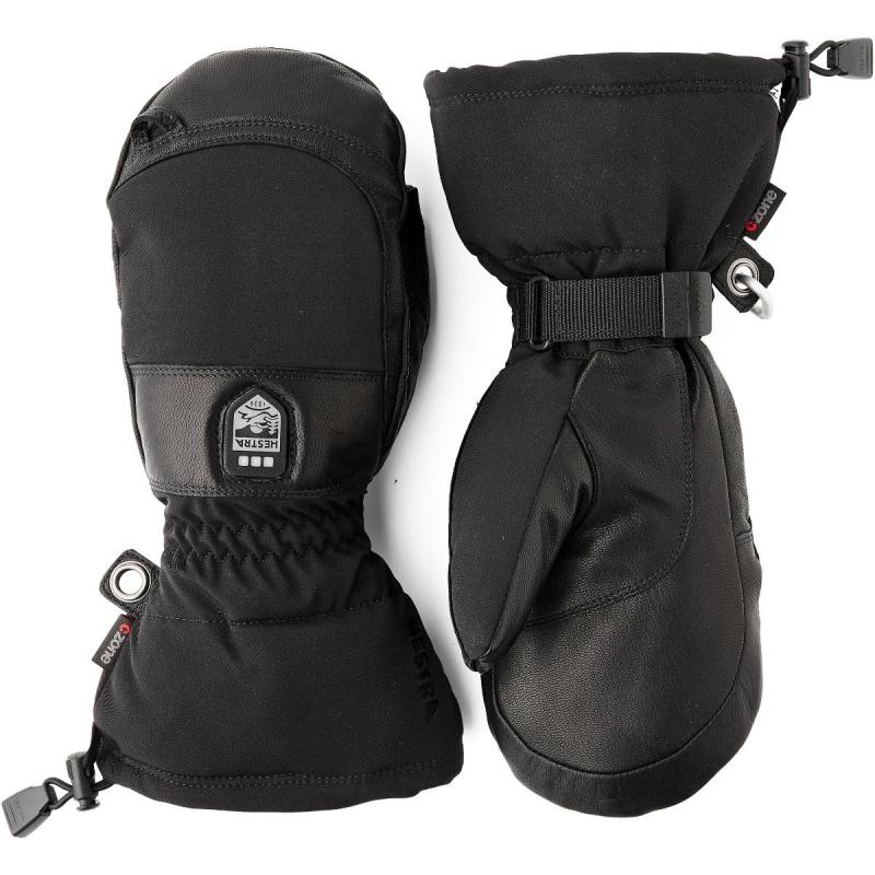 Hestra Heater Gauntlet skivott til dame og herre er utstyrt med varmepaneler i rundt fingrene. Varmen kan justeres i tre steg med en lett tilgjengelig kontroller gjemt i Hestra-logoen på håndbaken. Batteriene kan lades og skiftes ut ved behov, og gjemmes lett bort i en egen lomme i mansjetten. Votten har et ytre skall av slitesterkt impregnert geiteskinn og pustende softshell med vanntett CZone-membran, mens syntetisk isolasjon og liner av microfleece sørger for god varme og effektiv fukttransport. Håndleddsstropper sørger for at du ikke mister vottene om du trenger å ta dem av for å justere på utstyr, mens karabinkroken gjør det lett å feste vottene til sekk eller jakke når de ikke er i bruk. Mansjetten har stramming nederst for å holde varmen inne og snøen ute, mens borrelåsstramming rundt håndleddet sørger for en komfortabel og sikker passform.