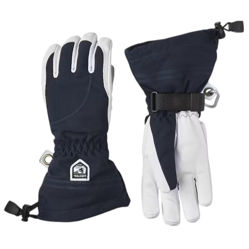 Hestra Heli Ski skihanske til dame er laget av den samme slikesterke og værbestandige kombinasjonen av geiteskinn og polyamid som unisex-versjonen, bare med en litt smalere passform. Utstyrt med G-Loft-isolasjon for god varme. Hansken er utstyrt med en utakbar liner for enkel tørk og vask, samt en håndleddsstropp slik at du ikke risikerer å miste hanskene dersom du må ta de av for å justere på utstyr. Praktisk karabinkrok gjør at du kan feste hanskene på sekk eller jakke dersom det blir for varmt. Den lange mansjetten med snølås holder snø ute og varmen inne. Heli Ski skihanske egner seg også godt til generell uteaktivitet på kjølige vinterdager.