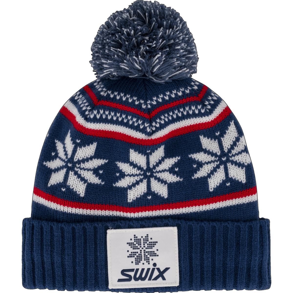 Swix Trysil lue til dame og herre er en klassisk topplue med behagelig fleecefôr som holder deg komfortabel og varm på kald vinterdager. Sjarmerende snøflakmønster og stor pom-pom gir et lekent preg som gjør seg like godt på fjellet som på søndagstur i byen. Ribbestrikket oppbrett gir ekstra varme over ørene.