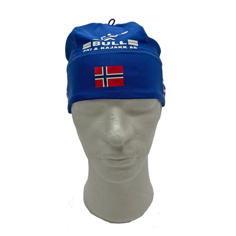 Allsidig langrennslue av hurtigtørkende og fukttransporterende materiale, her med norsk flagg og vår egen logo!