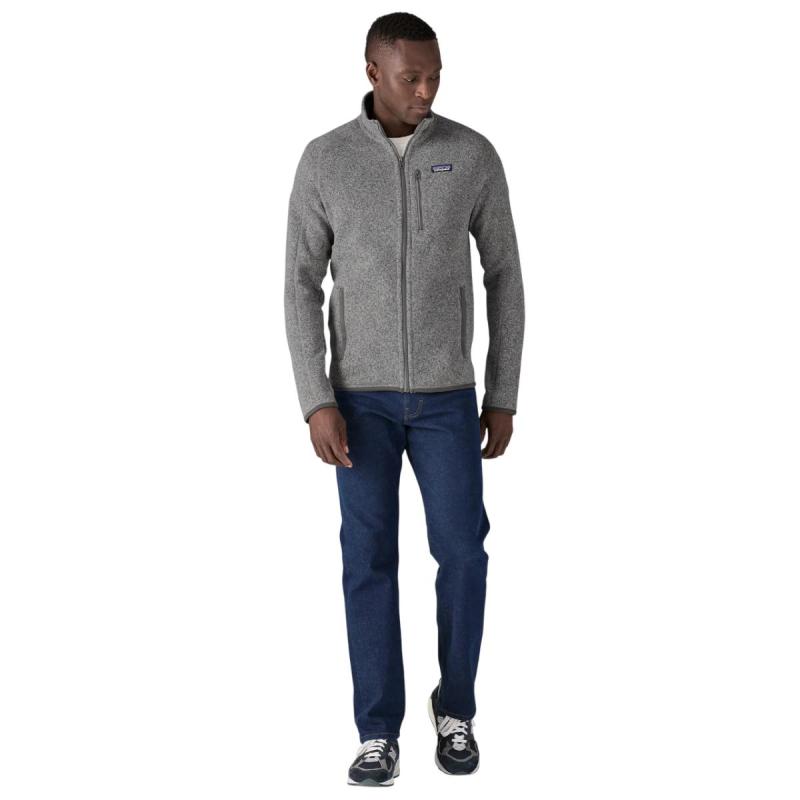 Patagonia Better Sweater™ fleecejakke til herre er en varm jakke laget av 100% resirkulert polyester. Jakken har et strikket utseende, farget gjennom en prosess som krever mindre farge, energi og vann sammenliknet med tradisjonelle fargemetoder. Raglan-ermer gir ypperlig bevegelsesfrihet, mens flate sømmer reduserer bulk og gir økt komfort. To glidelåslommer i siden og én på brystet gir trygg oppbevaring av verdisaker og småting. Patagonia Better Sweater™ fleecejakke til herre er produsert ved en Fair Trade Certified™ fabrikk og er laget av bluesign®-godkjente materialer.