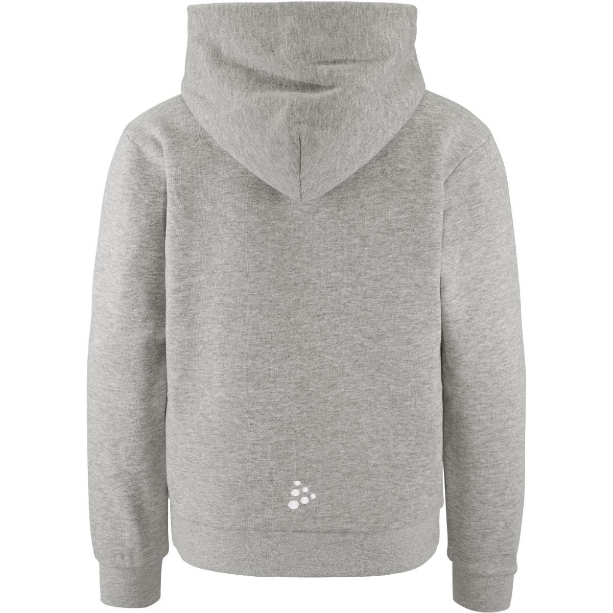 Craft Community 2.0 Logo hettegenser til junior er en sporty og avslappet genser til fritids- og hverdagsbruk. Genseren er laget av en myk blanding av resirkulert polyester og økologisk bomull, og er utstyrt med en børstet innside for ypperlig komfort.