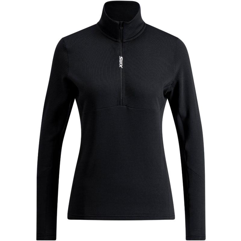 Swix Heat Wool langermet trøye til dame er et ypperlig mellomlagsplagg for kjølige dager, laget av en myk og behagelig merinoullblanding. Høy hals gir ekstra beskyttelse, mens halv glidelås sikrer effektiv ventilasjon ved behov. Flatlock-sømmer reduserer sjansen for gnaging, mens interne tommelhull forhindrer at ermene glir opp under aktivitet. Heat Wool langermet trøye er et allsidig plagg som gjør seg like godt som ytterste lag under utendørstrening på kalde høst- og vårdager, som det gjør som mellomlagsplagg gjennom vinterhalvåret.