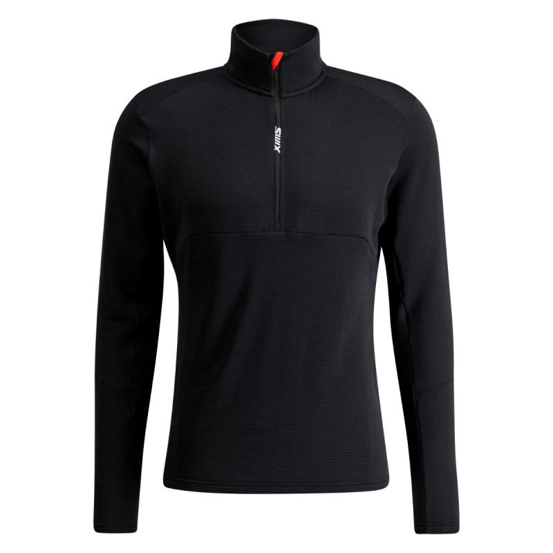 Swix Heat Wool langermet trøye til herre er et ypperlig mellomlagsplagg for kjølige dager, laget av en myk og behagelig merinoullblanding. Høy hals gir ekstra beskyttelse, mens halv glidelås sikrer effektiv ventilasjon ved behov. Flatlock-sømmer reduserer sjansen for gnaging, mens interne tommelhull forhindrer at ermene glir opp under aktivitet. Heat Wool langermet trøye er et allsidig plagg som gjør seg like godt som ytterste lag under utendørstrening på kalde høst- og vårdager, som det gjør som mellomlagsplagg gjennom vinterhalvåret.