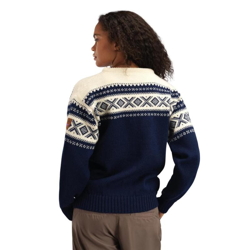 Dale of Norway Cortina 1956 ullgenser til dame og herre var Dales første offisielle OL-genser, originalt designet for vinter-OL i Cortina d'Ampezzo i 1956 av Bitte Eriksen. Det ikoniske mønsteret med dype røtter i norsk tradisjonshåndverk har blitt et av Norges mest elskede design. Cortina 1956 ullgenser benytter Plover-garn. Dette garnet er fremstilt av en blanding av ull fra norske sauer og har vært en del av Dale-familien siden 1939 takket være dets unike kvaliteter og konsistente popularitet gjennom tidene. Norsk ull er en av verdens mest dyrevennlige tekstilfibre takket være sauens frie fjellbeiting. Ulla som Dale benytter kommer fra sauer som går fritt i norske fjellsider og beiter på naturlige beiteområder med rikelig tilgang til næring, vann og frisk luft. Cortina 1956 er et unisex-plagg og tar utgangspunkt i herrestørrelser. Av den grunn anbefales det at damer går ned én størrelse fra det de vanligvis benytter.