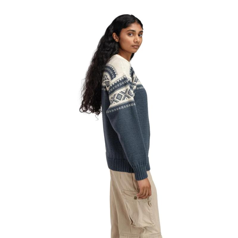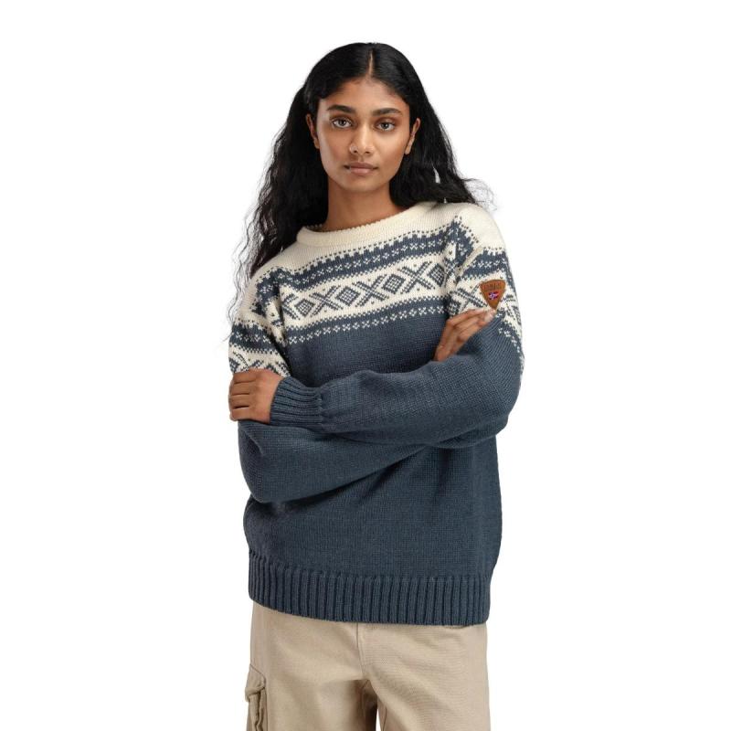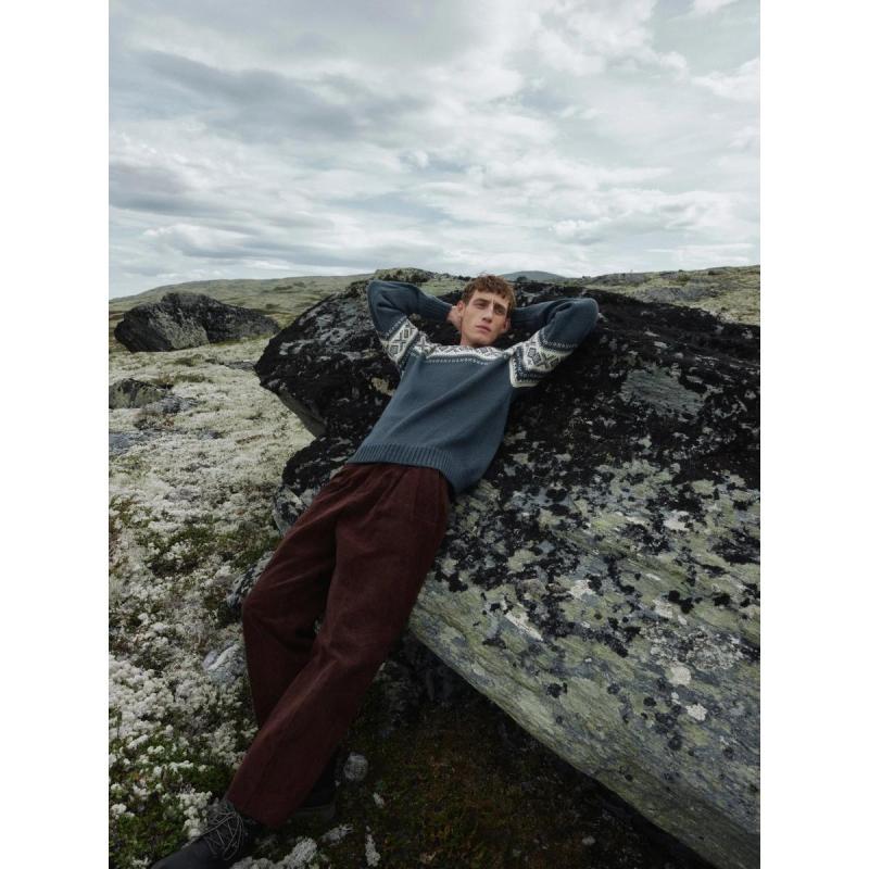 Dale of Norway Cortina 1956 ullgenser til dame og herre var Dales første offisielle OL-genser, originalt designet for vinter-OL i Cortina d'Ampezzo i 1956 av Bitte Eriksen. Det ikoniske mønsteret med dype røtter i norsk tradisjonshåndverk har blitt et av Norges mest elskede design. Cortina 1956 ullgenser benytter Plover-garn. Dette garnet er fremstilt av en blanding av ull fra norske sauer og har vært en del av Dale-familien siden 1939 takket være dets unike kvaliteter og konsistente popularitet gjennom tidene. Norsk ull er en av verdens mest dyrevennlige tekstilfibre takket være sauens frie fjellbeiting. Ulla som Dale benytter kommer fra sauer som går fritt i norske fjellsider og beiter på naturlige beiteområder med rikelig tilgang til næring, vann og frisk luft. Cortina 1956 er et unisex-plagg og tar utgangspunkt i herrestørrelser. Av den grunn anbefales det at damer går ned én størrelse fra det de vanligvis benytter.