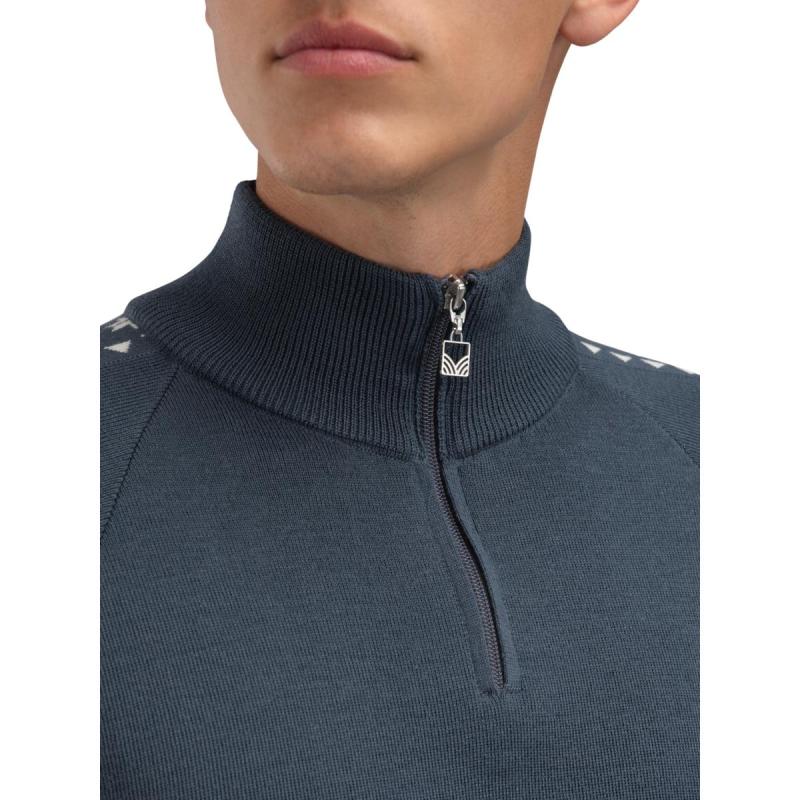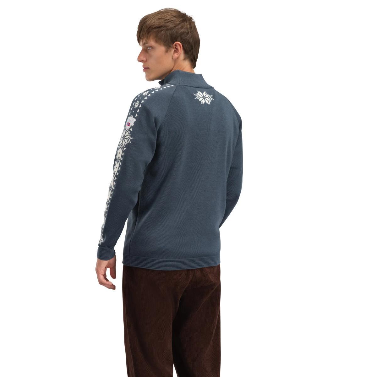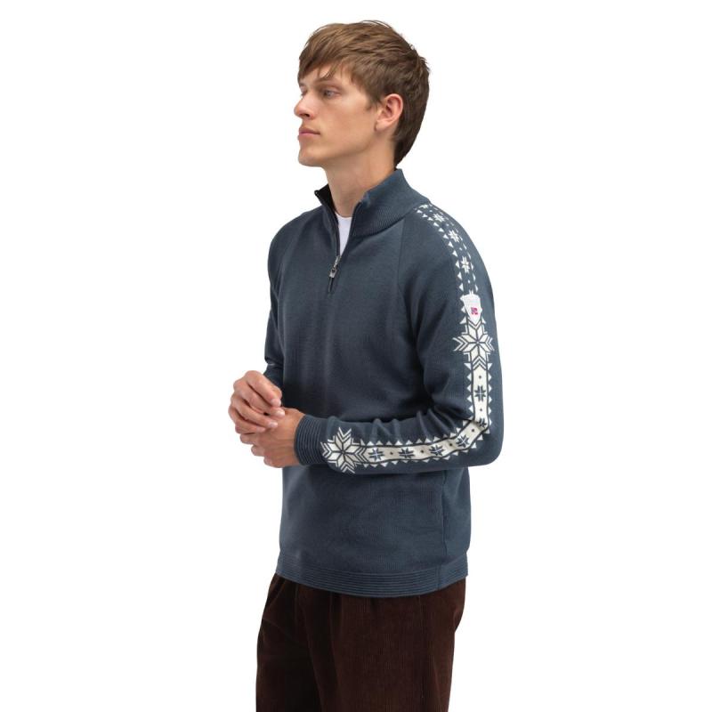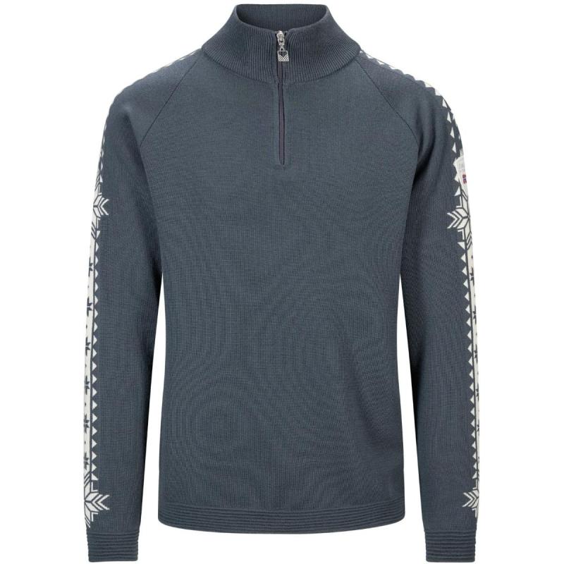 Dale of Norway Geilo ullgenser til herre har fått navnet sitt etter Norges mest populære skidestinasjon, designet med en robust dobbelstrikket konstruksjon, perfekt for en aktiv livsstil. Geilo ullgenser er laget av 100% supermyk premium merinoull for luksuriøs varme, mens medium høy hals med kvart glidelås gir ekstra komfort og allsidighet. Det repetitive mønster med åttetaggede roser på ermene gir genseren et klassisk utseende med et sporty preg. Geilo ullgenser til herre kan vaskes i maskin på ullprogram.