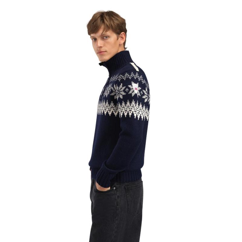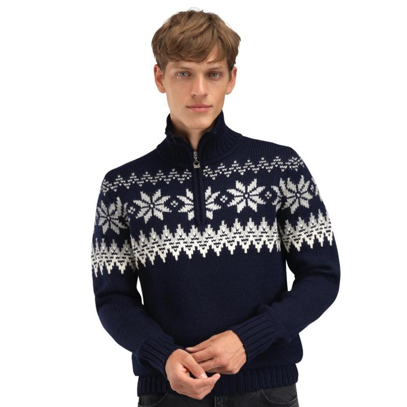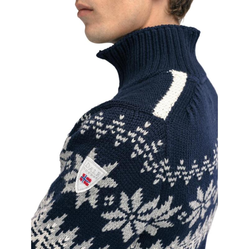 Dale of Norway Myking ullgenser til herre kombinerer tradisjonelle norske mønstre med et moderne utseende, og benytter den ikoniske åttetaggede rosen i et samtidsdesign for en klassisk og stilren genser som glir rett inn enhver garderobe. Myking ullgenser er laget av Dales Husky-garn, noe som gir uslåelig mykhet og varme med et håndstrikket utseende. Husky-garnet er et supermykt, tykt, men samtidig bemerkelsesverdig lett garn. Husky gir lette plagg med et tykt, håndstrikket utseende. Garnet er luftspunnet, en prosess hvor ullfibrene blåses gjennom et luftmunnstykke, hvorpå fiberendene blåses inn i en tynn kjerne av polyamid. Luftspunnet garn tilfører plagget en unik letthet og mykhet.