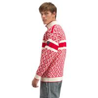 Dale of Norway Team Norway Cortina ullgenser er den offisielle genseren for den norske OL-troppen i vinter-OL i Milano Cortina 2026. Genseren er inspirert av Dales første offisielle OL-genser, den ikoniske 1956 Cortina d'Ampezzo. Denne nyforestillingen er en feiring av originalens 70 års-jubileum og hedrer syv tiår med tradisjoner. Utsiden er strikket av 100% norsk Njord-garn, kjent for å levere ypperlig varme, pusteevne og slitestyrke, mens innsiden er strikket av 100% supermyk merinoull for ekstra komfort. Høy hals med glidelås gir ekstra allsidighet.