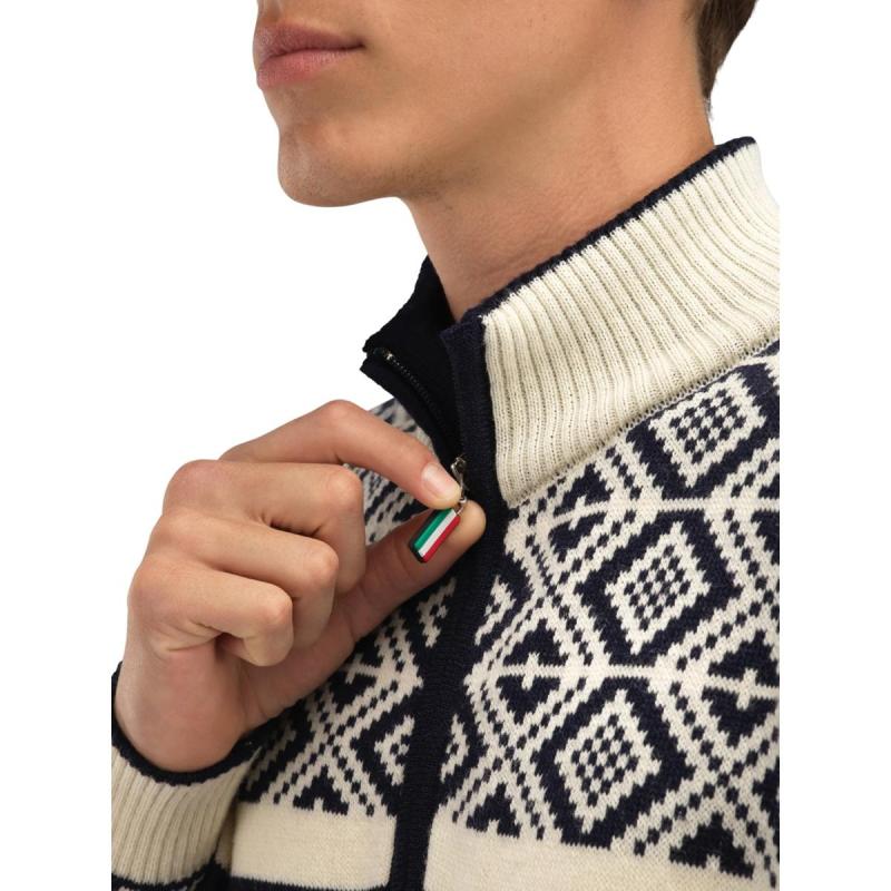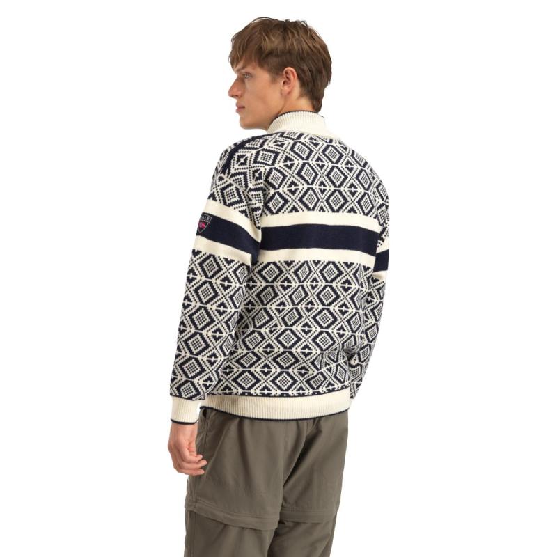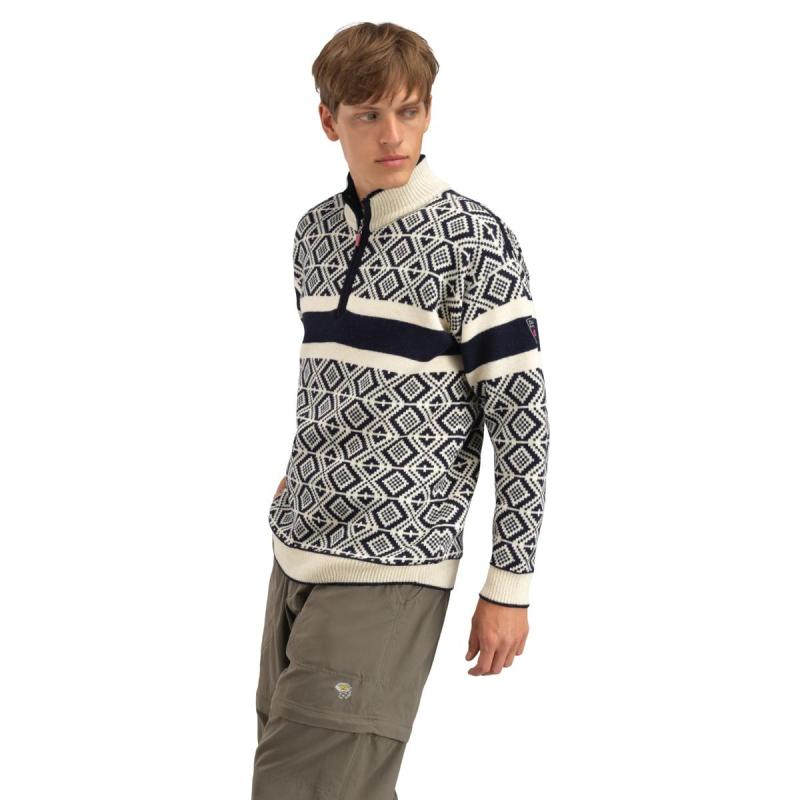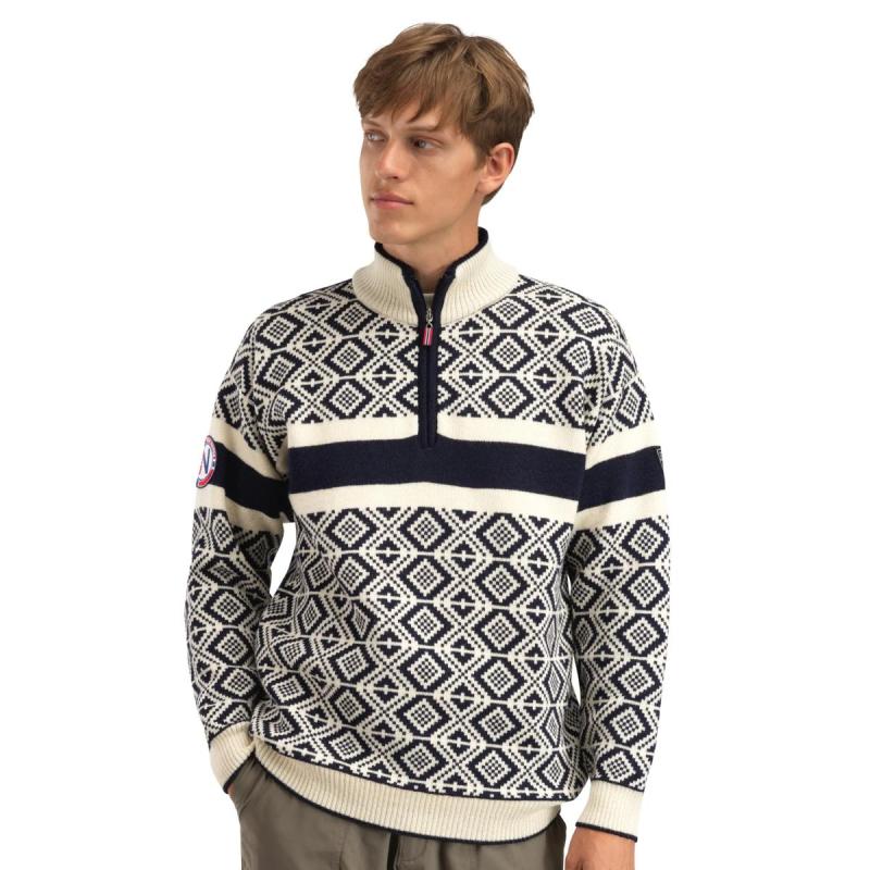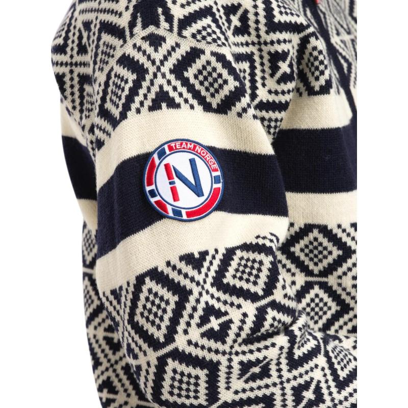 Dale of Norway Team Norway Cortina ullgenser er den offisielle genseren for den norske OL-troppen i vinter-OL i Milano Cortina 2026. Genseren er inspirert av Dales første offisielle OL-genser, den ikoniske 1956 Cortina d'Ampezzo. Denne nyforestillingen er en feiring av originalens 70 års-jubileum og hedrer syv tiår med tradisjoner. Utsiden er strikket av 100% norsk Njord-garn, kjent for å levere ypperlig varme, pusteevne og slitestyrke, mens innsiden er strikket av 100% supermyk merinoull for ekstra komfort. Høy hals med glidelås gir ekstra allsidighet.
