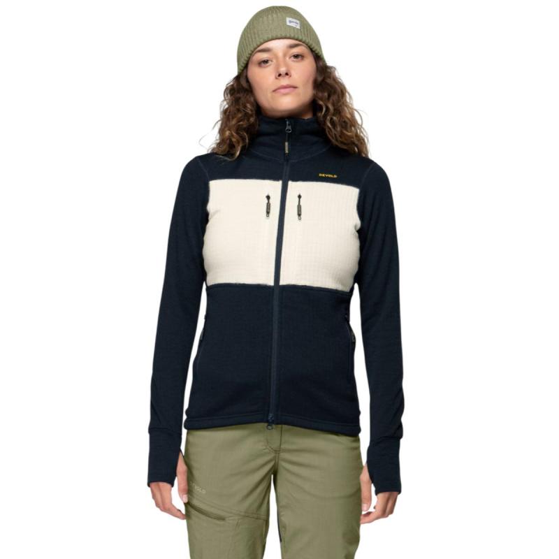 Devold Egga Grid ulljakke til dame er et meget funksjonelt mellomplagg i 100% merinoull. Jakken har en innside med diamantmønster som sørger for god luftutveksling mens den fleksible passformen gir optimal bevegelsesfrihet. 2-veis glidelås gir mulighet for ekstra lufting ved høyintensive aktiviteter. Glidelåslommer både i siden og på brystet gir sikker oppbevaring av verdisaker og småting. Egga Grid ulljakke gjør seg godt både til ski og topptur i kjølig vær, men kan også fint brukes som ytterplagg ved mildere temperaturer.