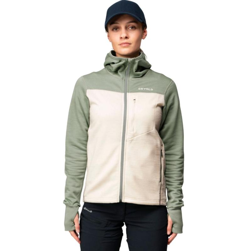 Devold Explorer Merino hettejakke til dame er en del av Devolds nyeste utforsker-kolleksjon bestående av plagg som leverer den ultimate balansen mellom varme og vekt i en myk og komfortabel pakke. Plaggene har en supermyk børstet innside av 100% merinoull og en utside av Expedition-garn med Aquaduct-teknologi for ypperlige fukttransporterende egenskaper. Explorer-plaggene leverer det beste av to verdener og er den perfekte partneren når utforskertrangen slår inn.
