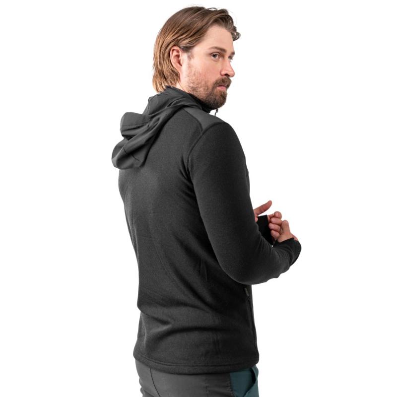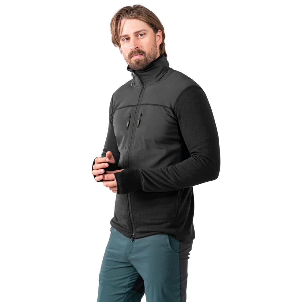 Devold Herøy Hybrid Merino ulljakke til herre er et ypperlig mellomlag i vevd merinoull med toveis stretch. Jakken er utstyrt med vindavvisende materiale på bryst, skuldre og hette for ekstra beskyttelse mot vær og vind. Hetten kan dessuten rulles inn i kragen når den ikke er i bruk. Myk innside i temperaturregulerende merinoull sørger for å holde deg både varm og tørr fra start til slutt. Jakken er utstyrt med to sidelommer og to brystlommer med glidelås, samt mansjetter med tommelhull. Herøy Hybrid Merino ulljakke gjør seg også godt som ytterste lag på dager med mildere temperaturer.