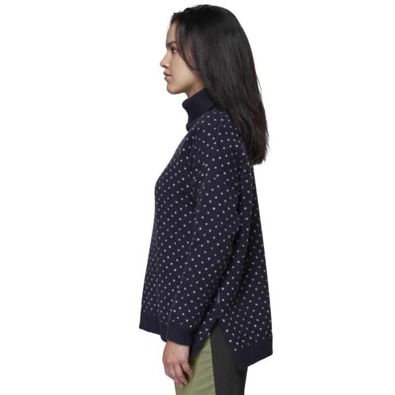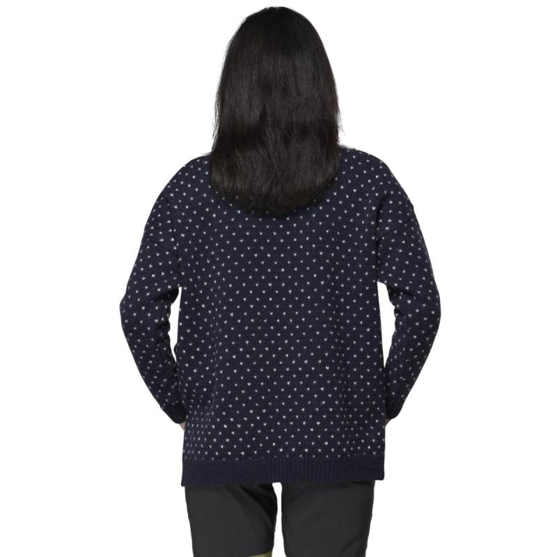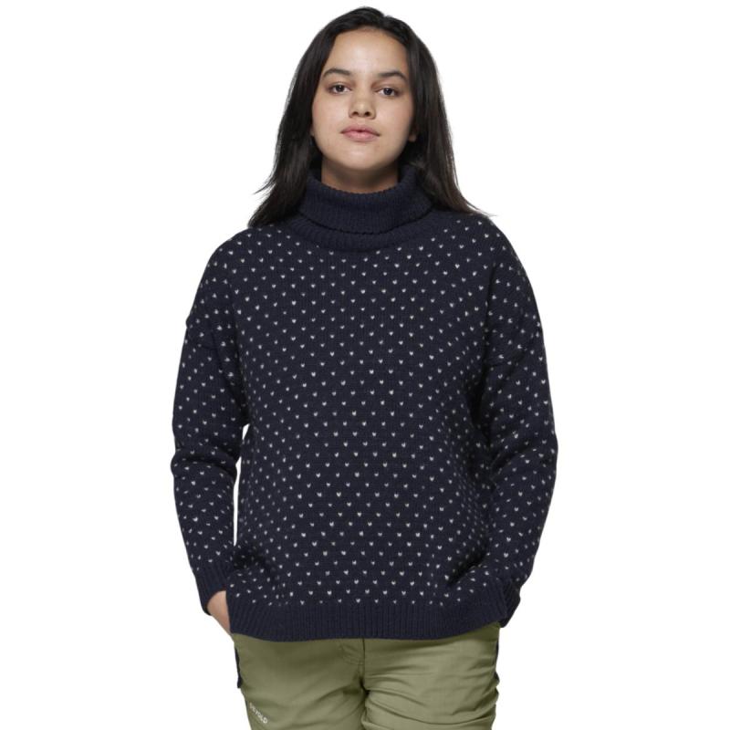 Devold Sørisen ullgenser til dame er en mer feminin versjon av Sørisen-genseren med behagelig høy hals og splitt i siden. Sørisen er en lettere og mykere versjon av Nordsjø-genseren, med nedtonede farger og større avstand mellom lusene for å den et ekstra minimalistisk uttrykk. En klassisk flatstrikket genser i to farger med behagelig ribbestrikk nederst på kropp og ermer.