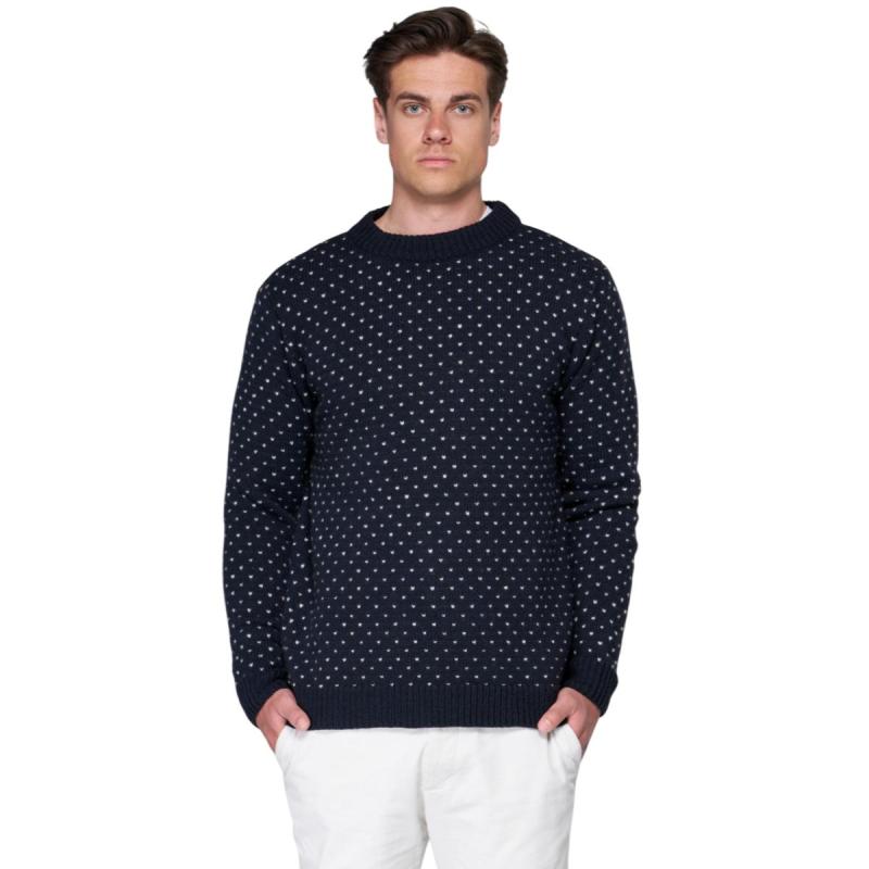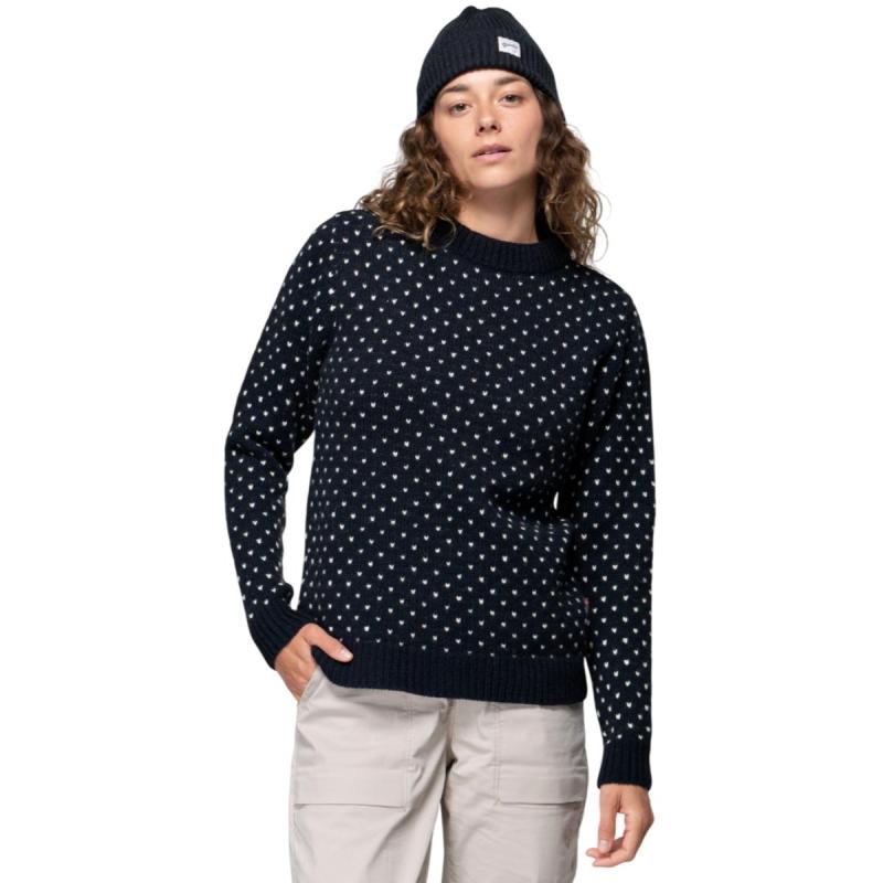 Devold Sørisen ullgenser til dame og herre er en oppdatert versjon av Nordsjø-genseren. Sørisen er lettere og mykere enn originalen, med nedtonede farger og større avstand mellom lusene for å den et ekstra minimalistisk uttrykk. En klassisk flatstrikket genser i to farger med behagelig ribbestrikk nederst på kropp og ermer.