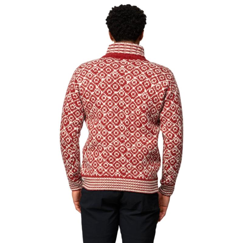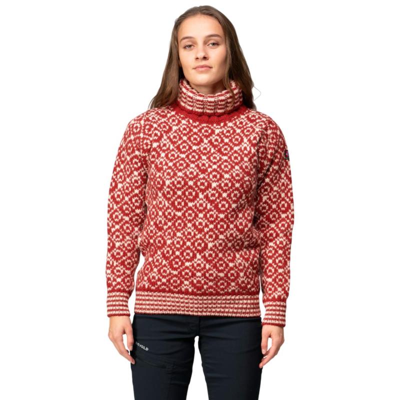 Devold Svalbard høyhalset ullgenser til dame og herre er en av Devolds desidert varmeste ullgensere. Genseren er laget av 100% ren ull fra norske sauer og er designet av Olmes Carretti. Strikket i tofarget hel Jacquard med komfortabel ribbestrikk nederst, på ermene og i halsen. En ypperlig vinterkompanjong både på hytta og i mer urbane strøk.