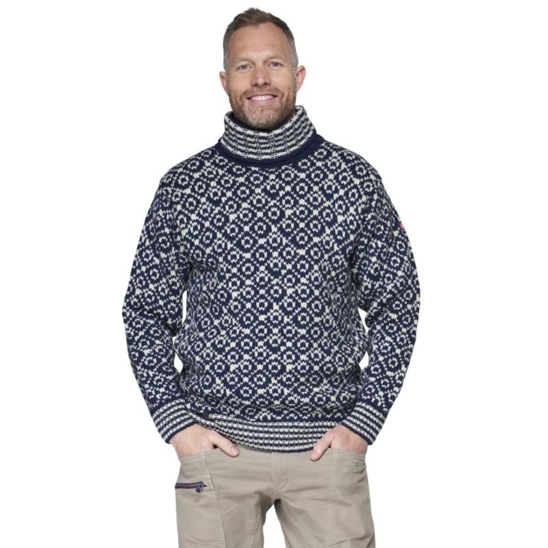 Devold Svalbard høyhalset ullgenser til dame og herre er en av Devolds desidert varmeste ullgensere. Genseren er laget av 100% ren ull fra norske sauer og er designet av Olmes Carretti. Strikket i tofarget hel Jacquard med komfortabel ribbestrikk nederst, på ermene og i halsen. En ypperlig vinterkompanjong både på hytta og i mer urbane strøk.