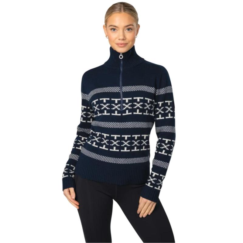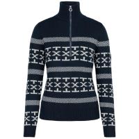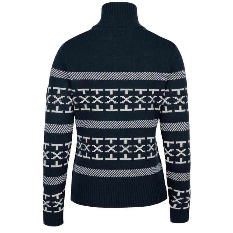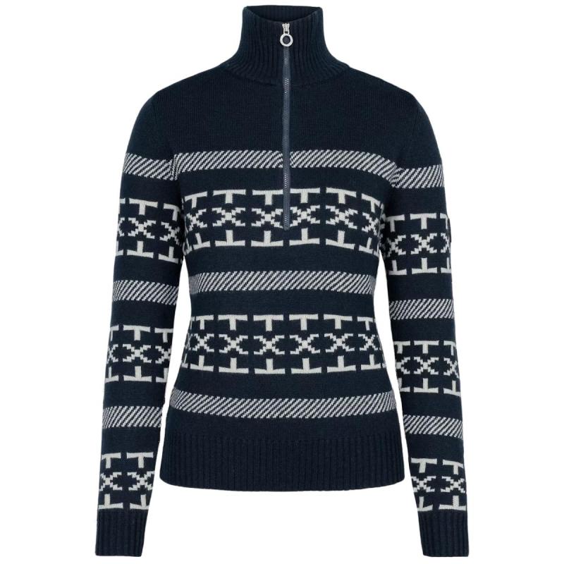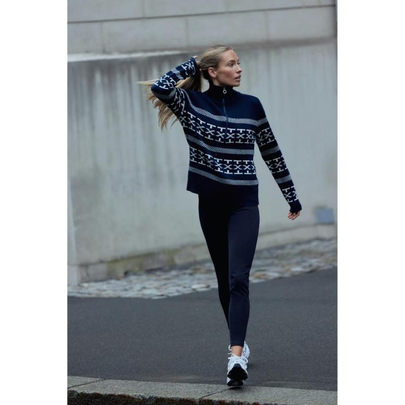 Johaug Dalsbygda Woolmix Half Zip er en myk og varm genser av 50% ull som egner seg like godt til afterski og hyttekos som til hverdags. Høy hals gir ekstra varme, mens glidelås gir effektiv ventilasjon ved behov. Ribbestrikkede mansjetter og nedre del kropp gir en behagelig og sikker passform, jacquard-strikket mønster gir et snev av eleganse.