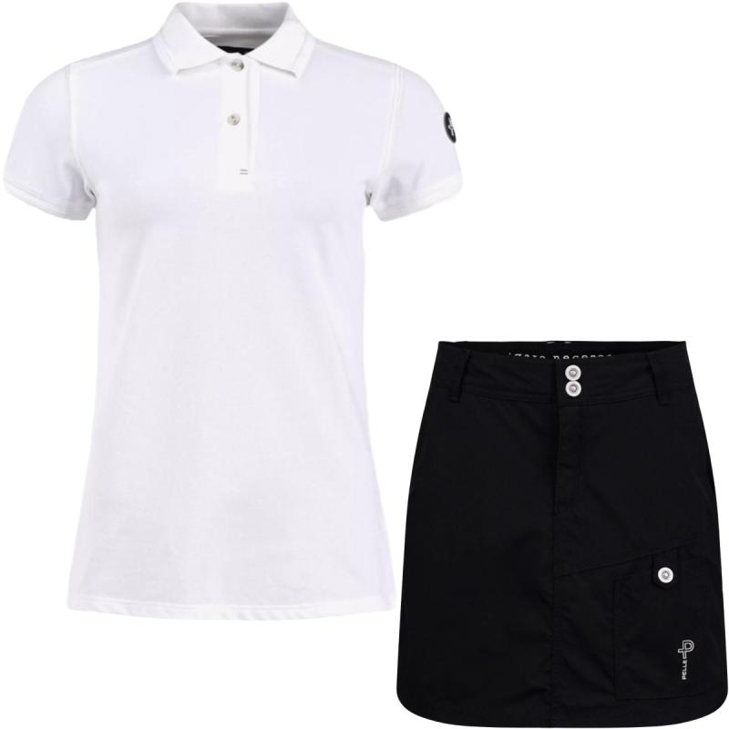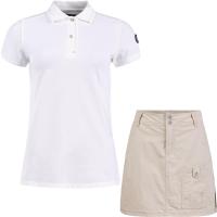 Funksjonelt og allsidig fritidssett bestående av en stilig poloskjorte i stretch-piqué, og hurtigtørkende og slitesterkt skjørt med innebygd shorts.