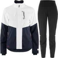 Høytytende langrennssett med vind- og vanntett front, og lett vattert jakke.