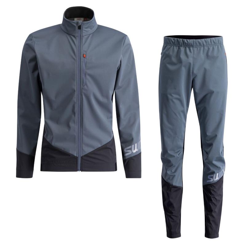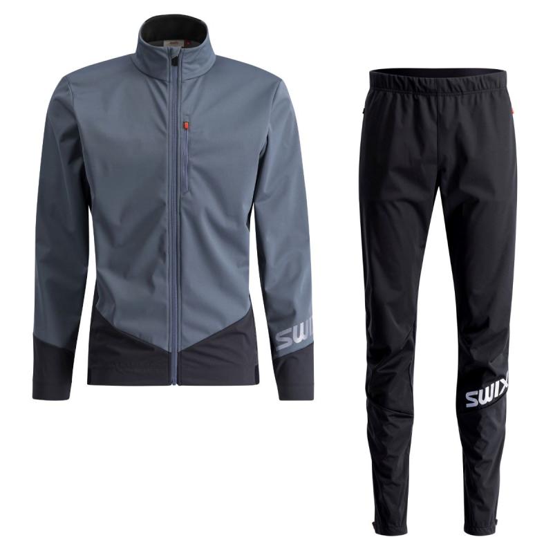 Langrennsjakke og -bukse til herre av 3-lags Gore-Tex softshell, for ypperlig vindbeskyttelse og bevegelsesfrihet.
