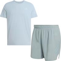 Moderne løpesett med Climacool-teknologi bestående av en hurtigtørkende trøye medypperlig bevegelsesfrihet, og en minimalistisk løpeshorts med støttende innertruse, glidelåslomme på ryggen og to stash-lommer i linningen.