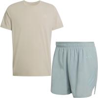 Moderne løpesett med Climacool-teknologi bestående av en hurtigtørkende trøye medypperlig bevegelsesfrihet, og en minimalistisk løpeshorts med støttende innertruse, glidelåslomme på ryggen og to stash-lommer i linningen.
