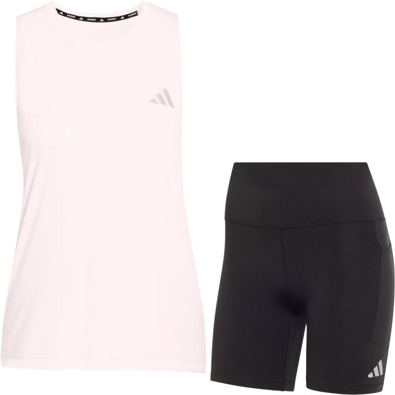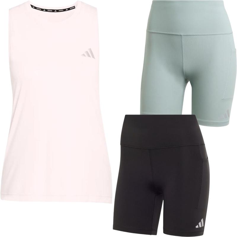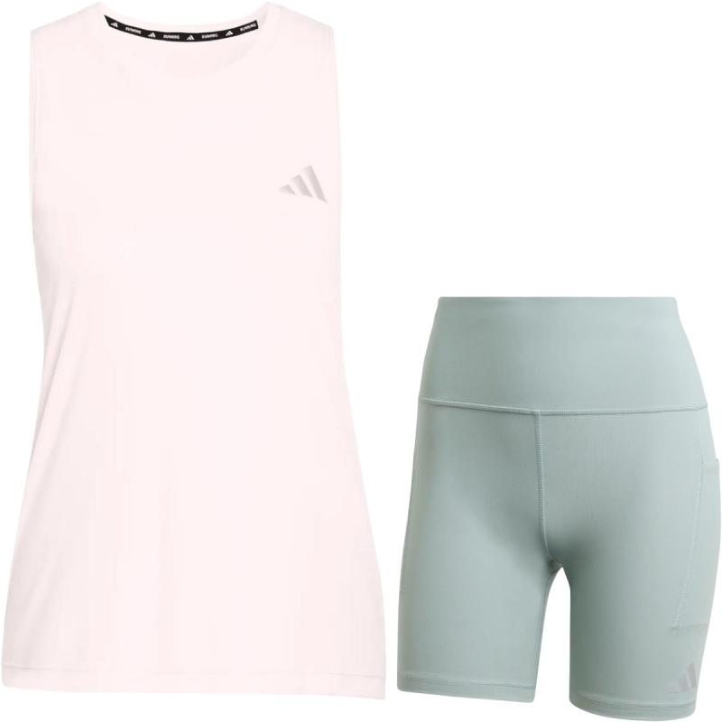 Moderne løpesett med Climacool-teknologi bestående av en hurtigtørkende singlet med ypperlig bevegelsefrihet, og en myk og komfortabel kort tights med høyt liv og mobillomme på låret.