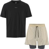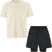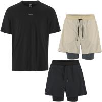 Lett og mykt treningssett bestående av kortermet trøye og shorts med innertights. Hurtigtørkende stoff og perforerte detaljer sikrer ypperlig temperaturkontroll og ventilasjon, mens trøye med teipede ermeavslutninger og linning, samt shorts med flere lommer sikrer god komfort og praktisk oppbevaring av verdisaker og ernæring.