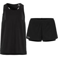 Avansert treningssett bestående av singlet og shorts av hurtigtørkende og pustende materiale for maksimal komfort over lange distanser. Racerback-design og shorts med høye sidesplitter sikrer optimal bevegelsesfrihet.