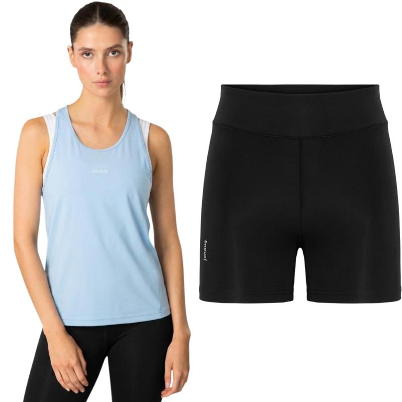 Lett og mykt løpesett med singlet og kort tights. Ypperlig stretch, flatlock-sømmer, singlet med racerback-design og tights med støttende liv sørger for optimal bevegelsesfrihet og komfort som egner seg både til løpeturer og gymøkter.