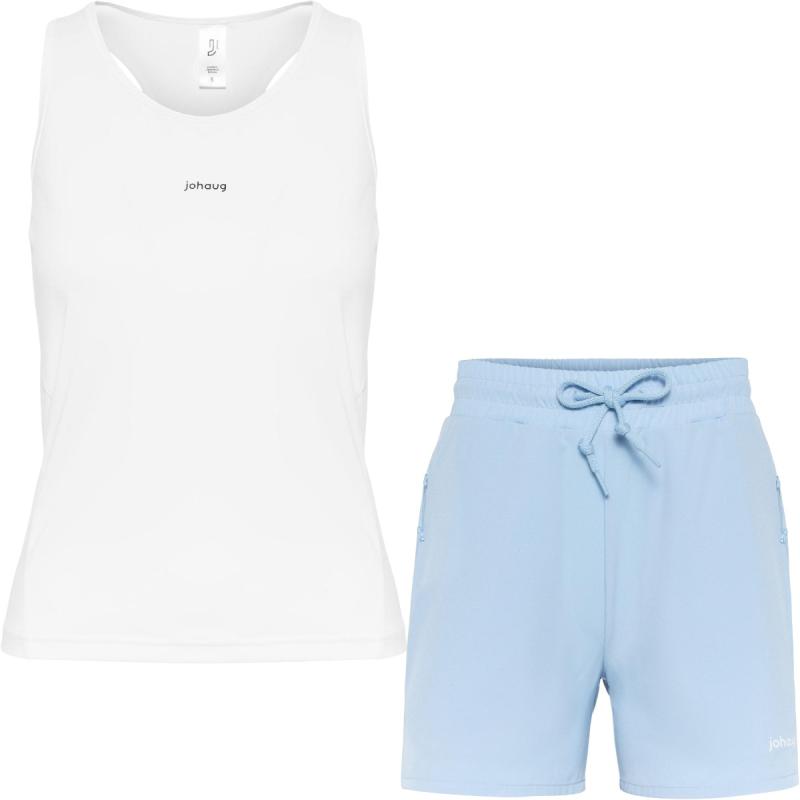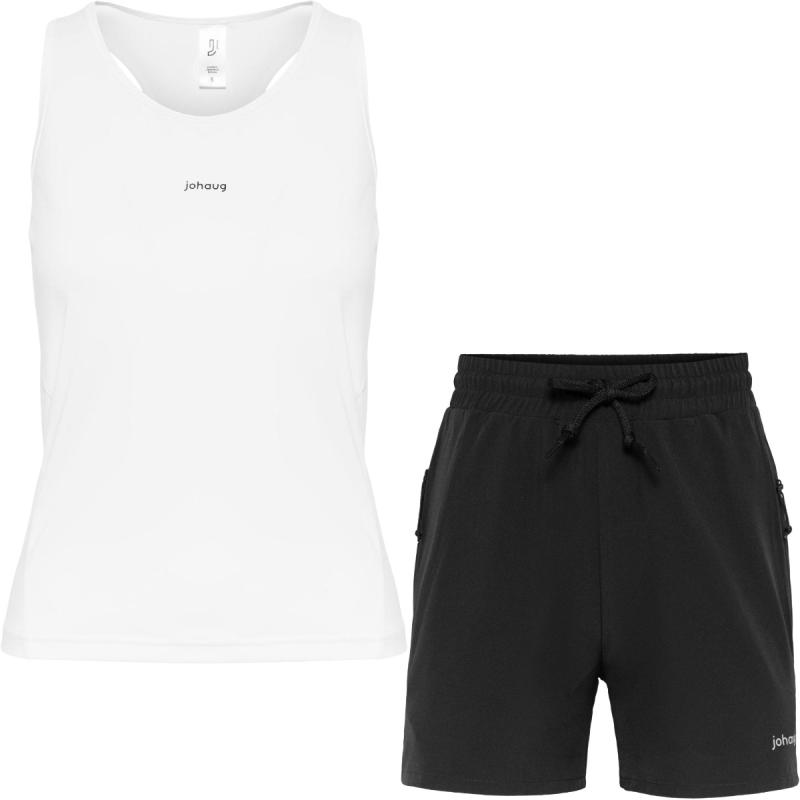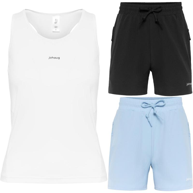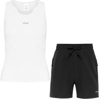 Lett og mykt løpesett med singlet og shorts. Ypperlig stretch, flatlock-sømmer, singlet med racerback-design og shorts med høyt liv sørger for optimal bevegelsesfrihet og komfort som egner seg både til løpeturer og gymøkter.