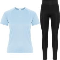 Lett og mykt løpesett med kortermet trøye og lang tights. Ypperlig stretch, flatlock-sømmer, trøye med raglan-ermer og tights med støttende liv sørger for optimal bevegelsesfrihet og komfort som egner seg både til løpeturer og gymøkter.