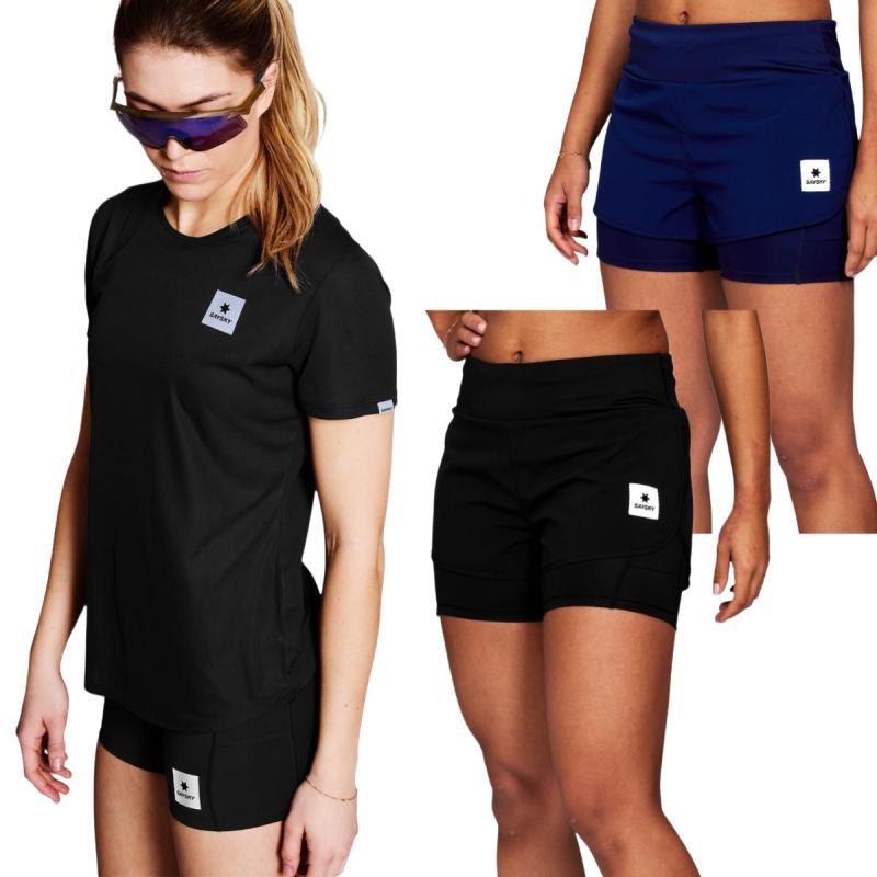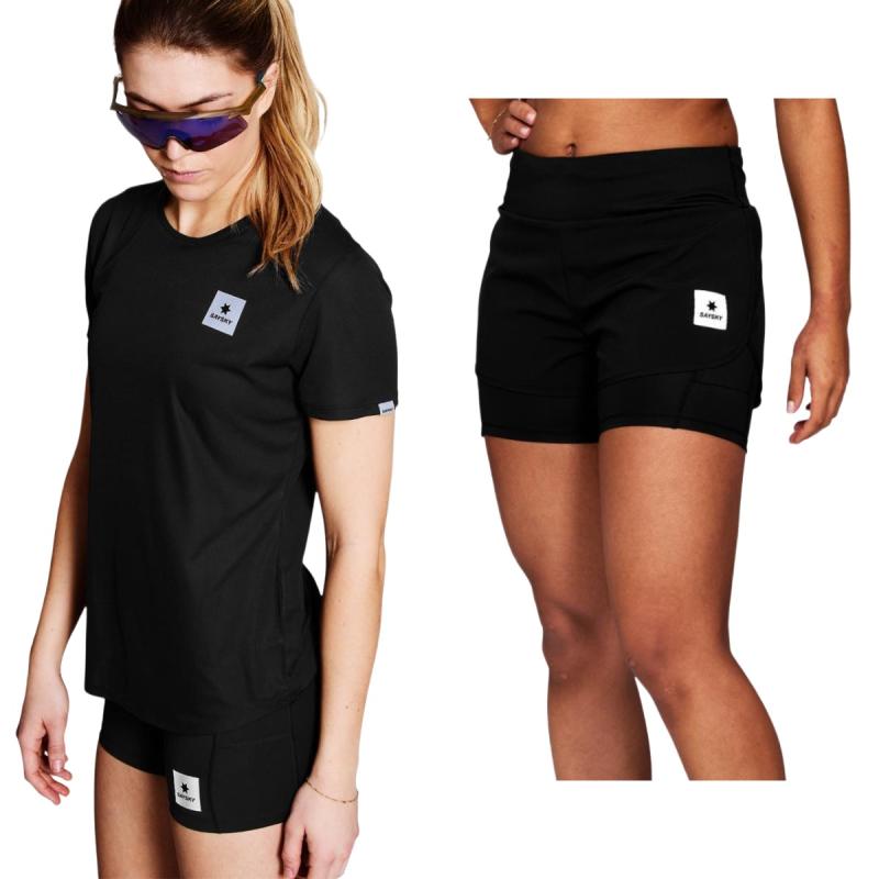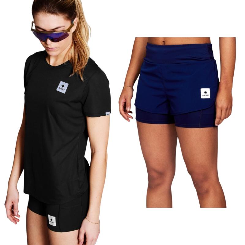 Lett og pustende løpesett bestående av en hurtigtørkende trøye og en høytytende shorts med innebygd tights, høyt liv og smarte oppbevaringsløsninger.